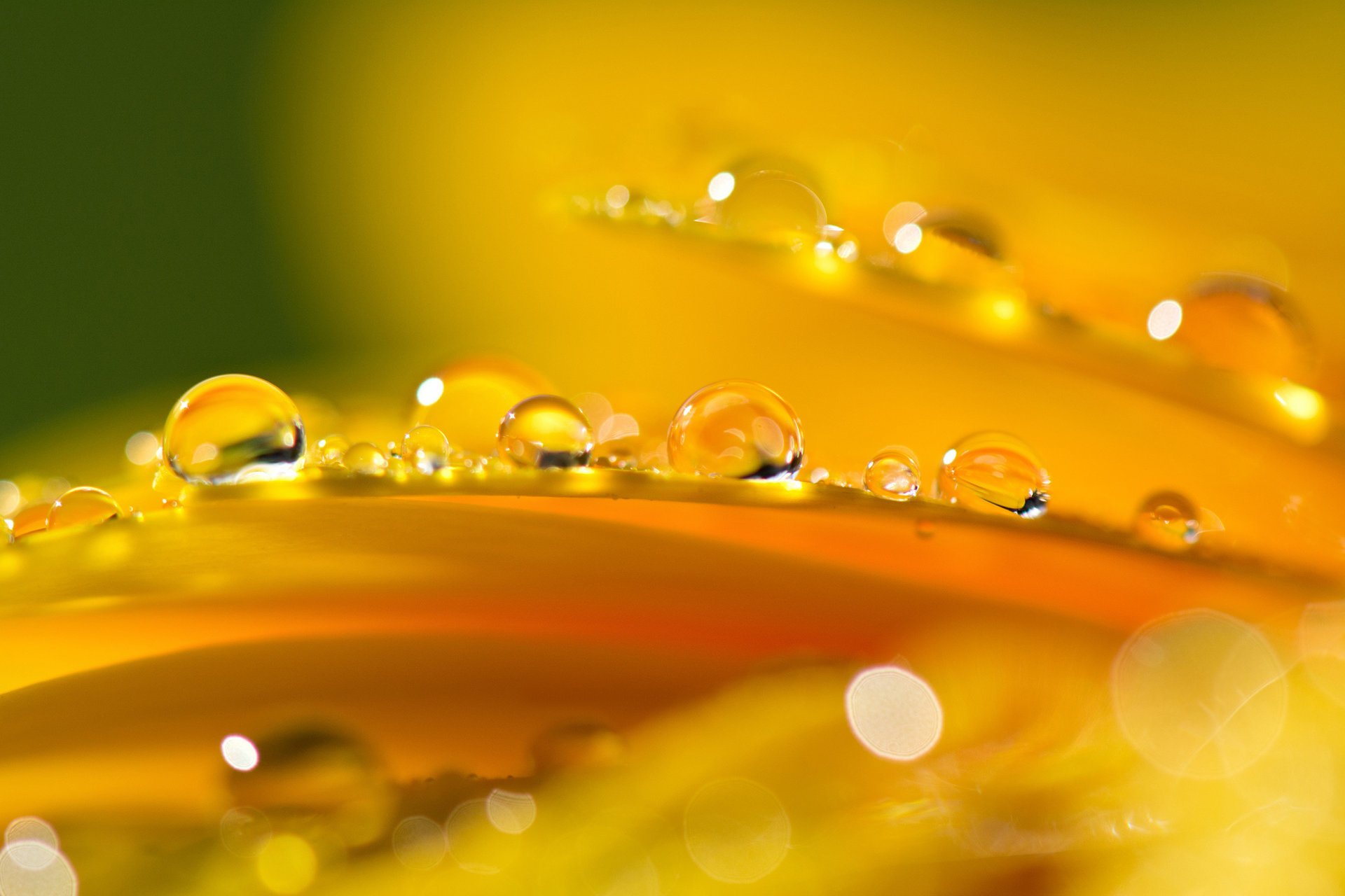 Ramo di un albero con foglie quasi volate e gocce d'acqua su sfondo blu sfocato