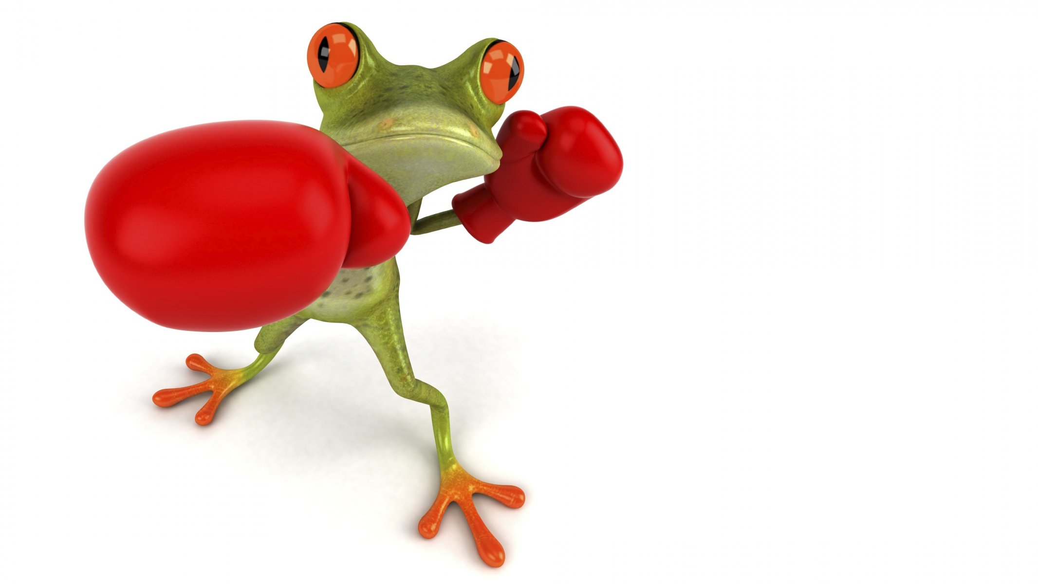 Rana verde in guantoni da boxe rossi