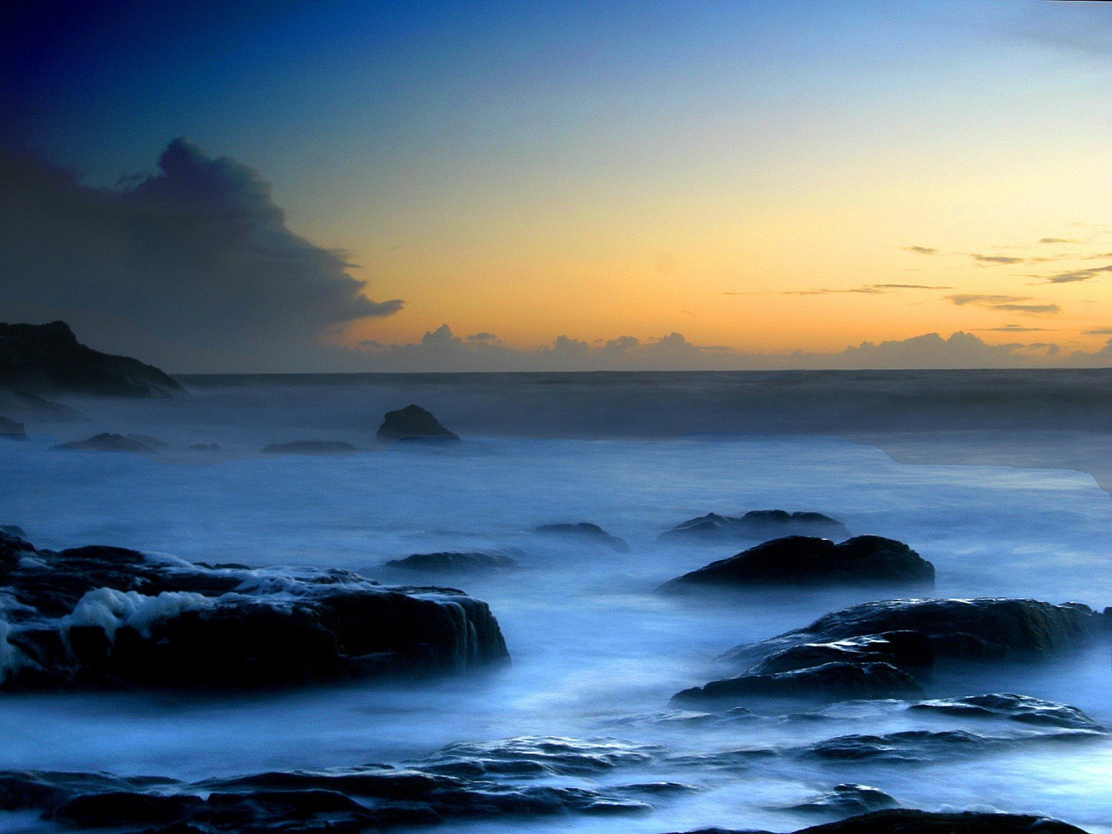 La schiuma di mare ha avvolto le rocce con la sua spessa coperta