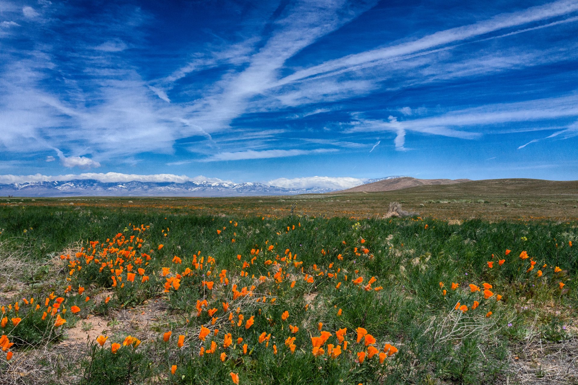Prato di papaveri sotto il cielo blu