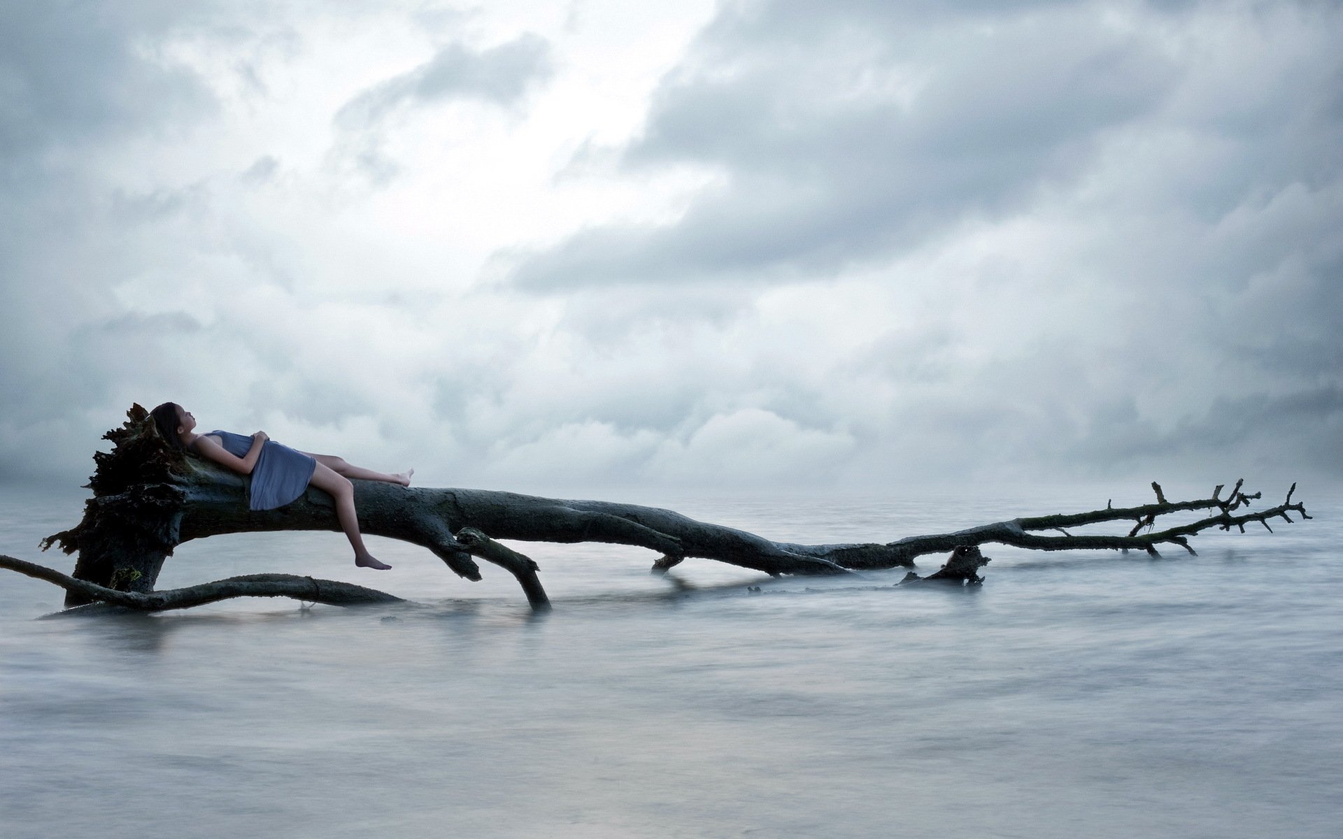 Pietra solitaria in mezzo al lago nuvoloso di giorno