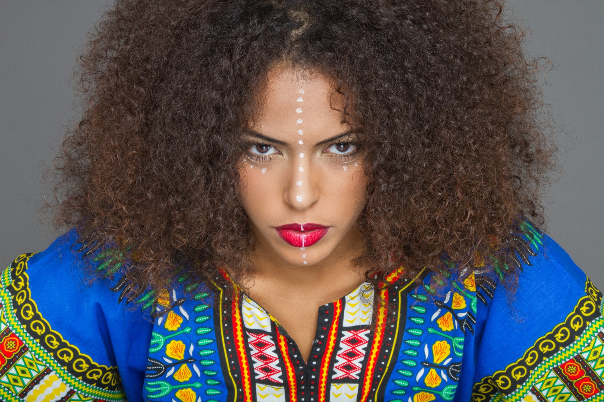 Bella fanciulla di neve in un vestito rosso con un regalo