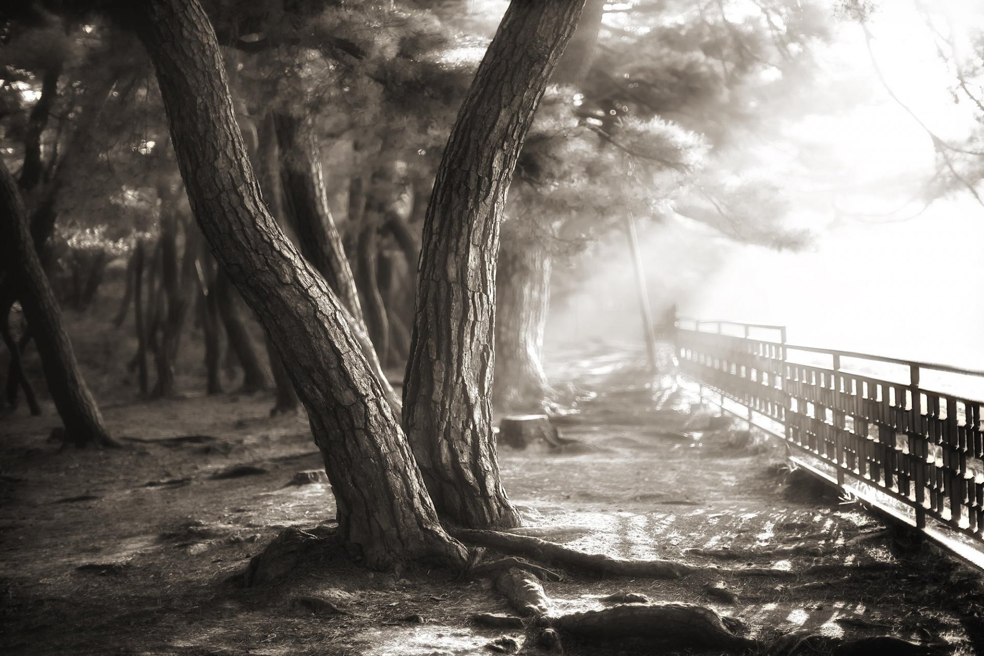 Il ponte sulla spiaggia dell'oceano affascina la vista dell'alba