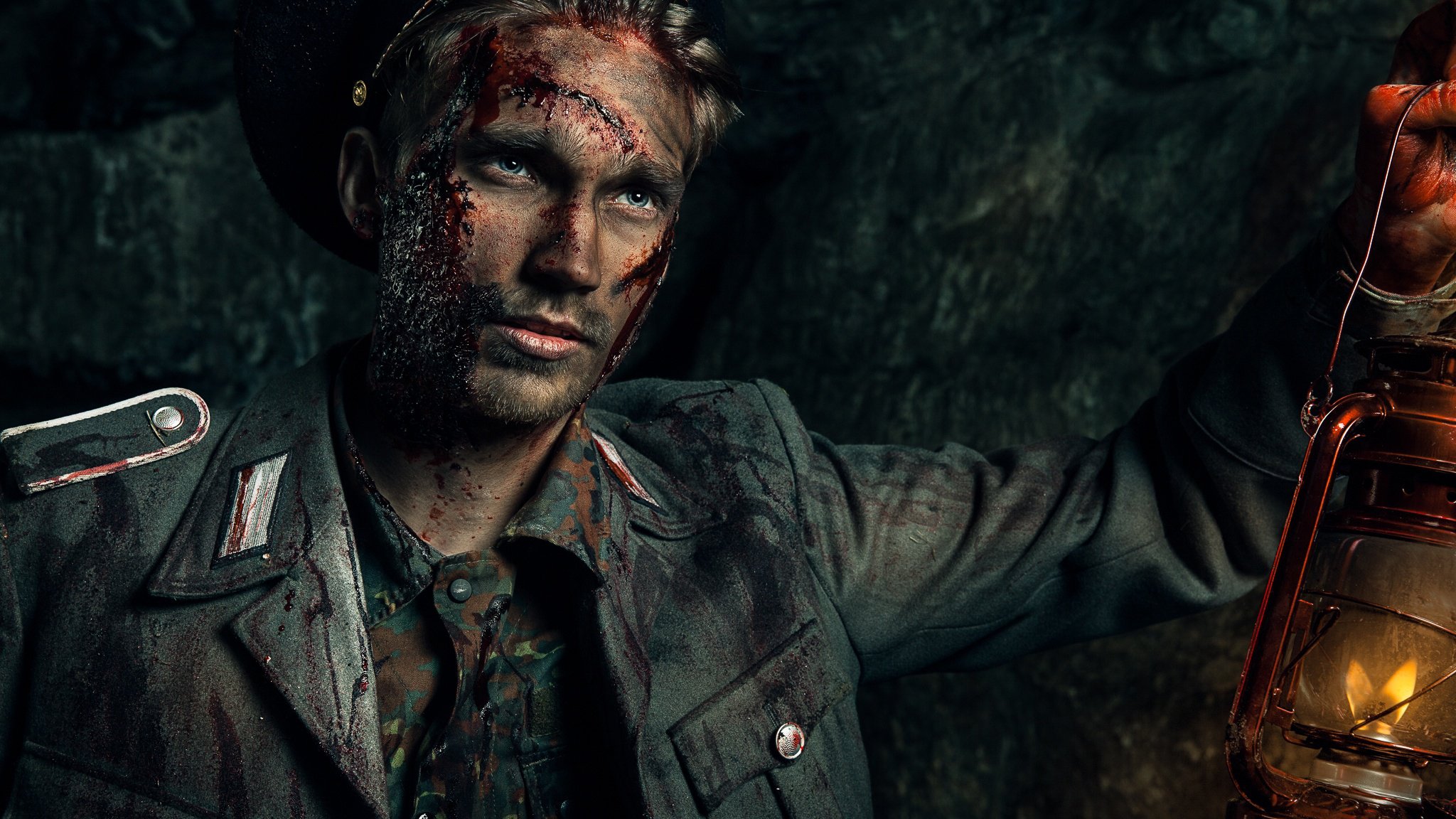 L'amante dei libri si siede in mezzo alla foresta con Libri e una lampada