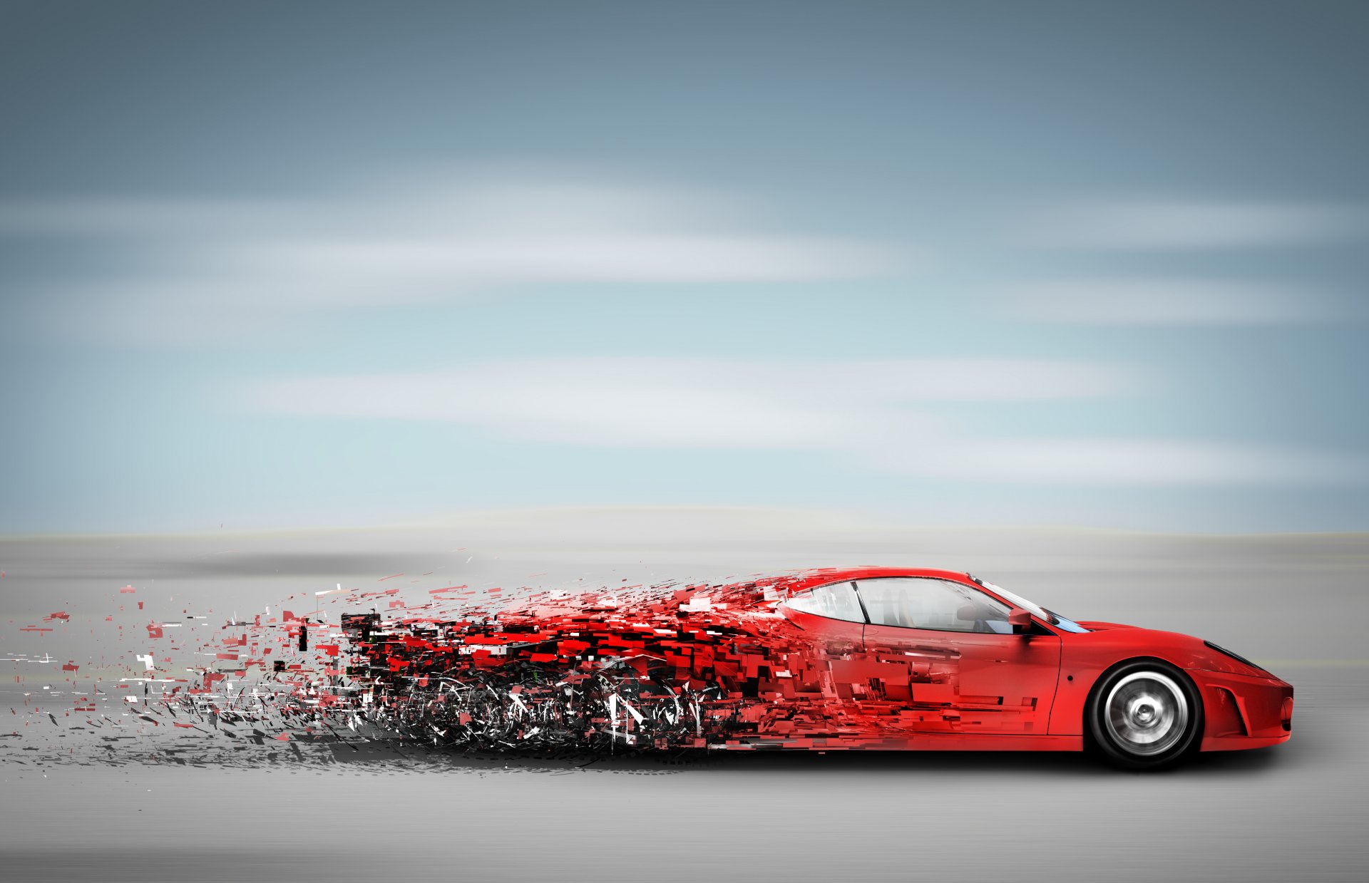 Bella colorazione insolita di una macchina da corsa in rosso e bianco