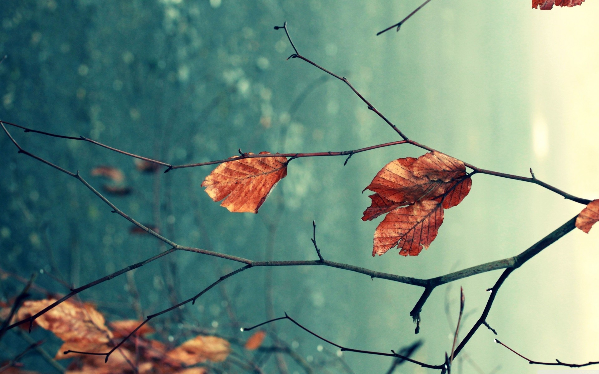 Macro ripresa di una foglia d'autunno su un ramo