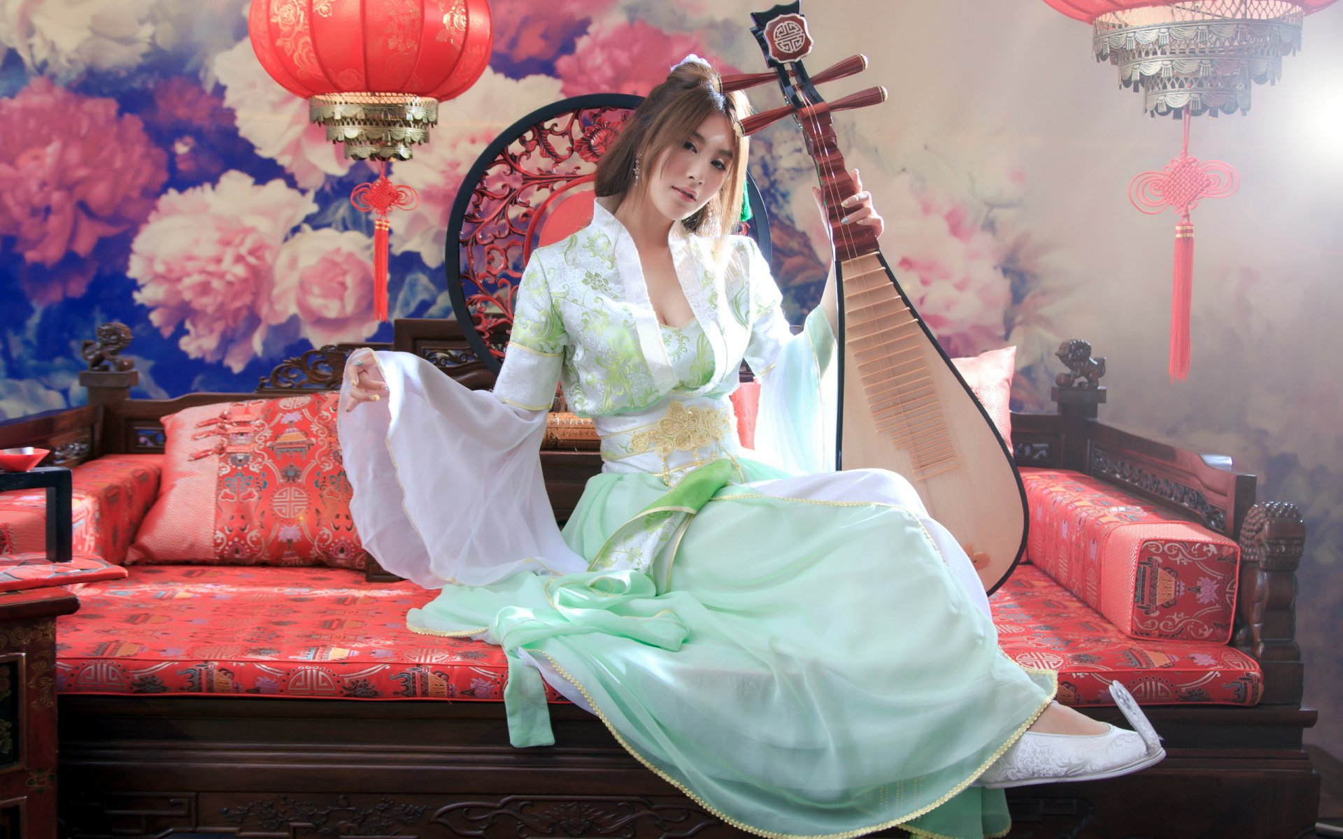 Mulatto donna con chitarra in mano