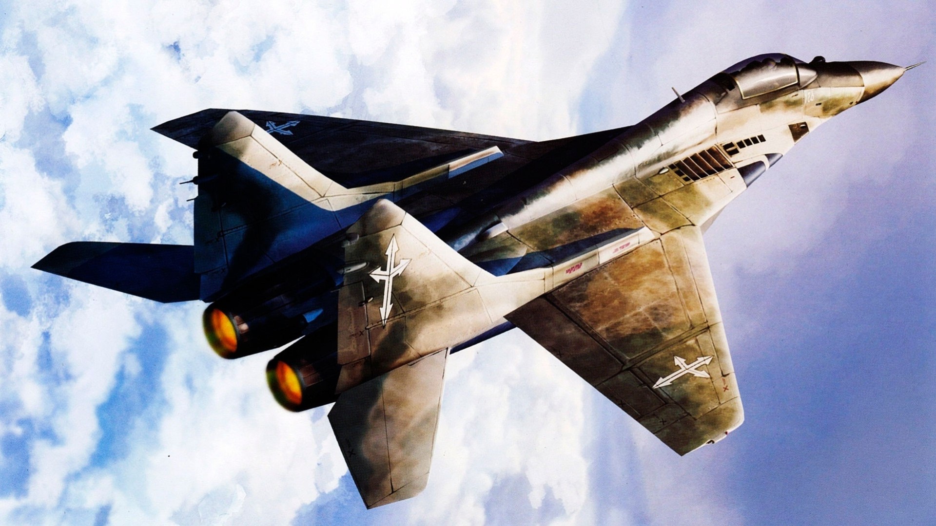 Aereo militare russo sullo sfondo del cielo e delle montagne