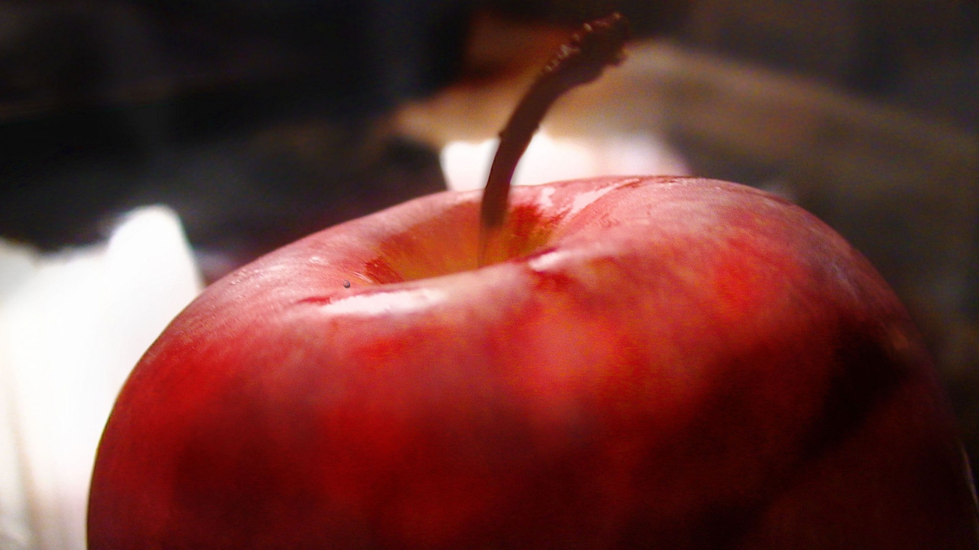 Atmosfera di Capodanno. Stencil dell'albero di Natale sulla mela