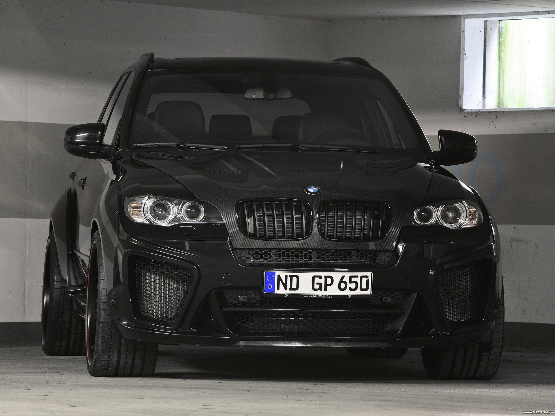 BMW nero su sfondo muro grigio