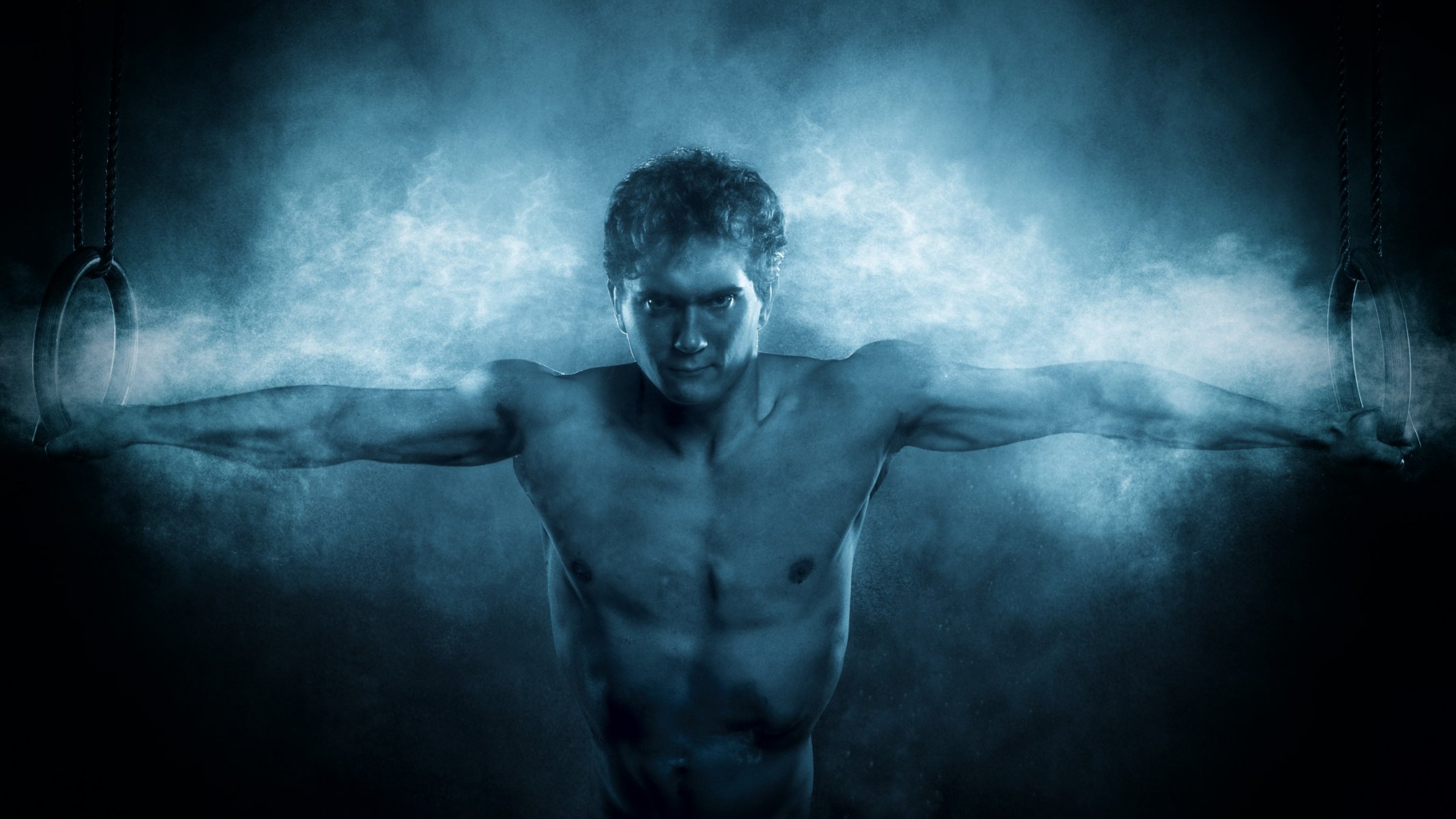 Atleta di atletica leggera durante l'esercizio sugli anelli