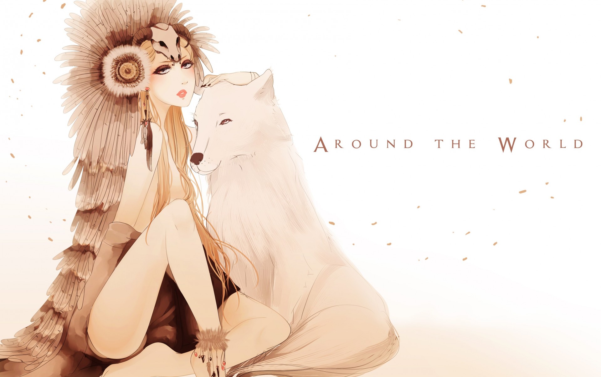 Ragazza seduta accanto al lupo bianco
