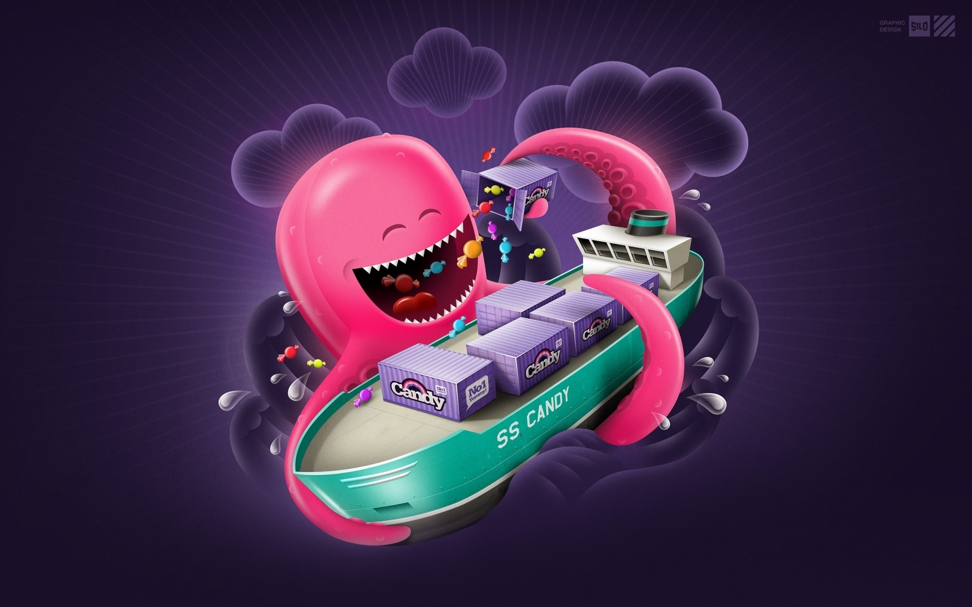 Schizzo di una nave nel mare blu sullo sfondo del tramonto