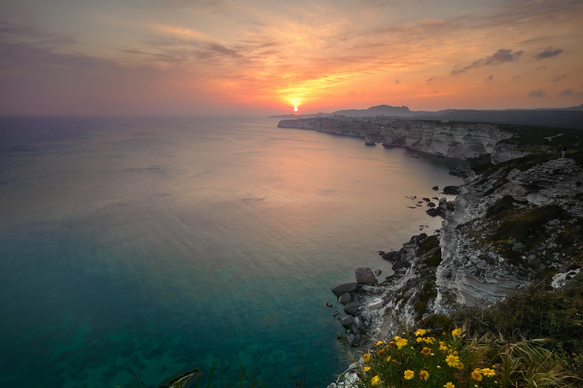 Tramonto arancione sulla costa del mare
