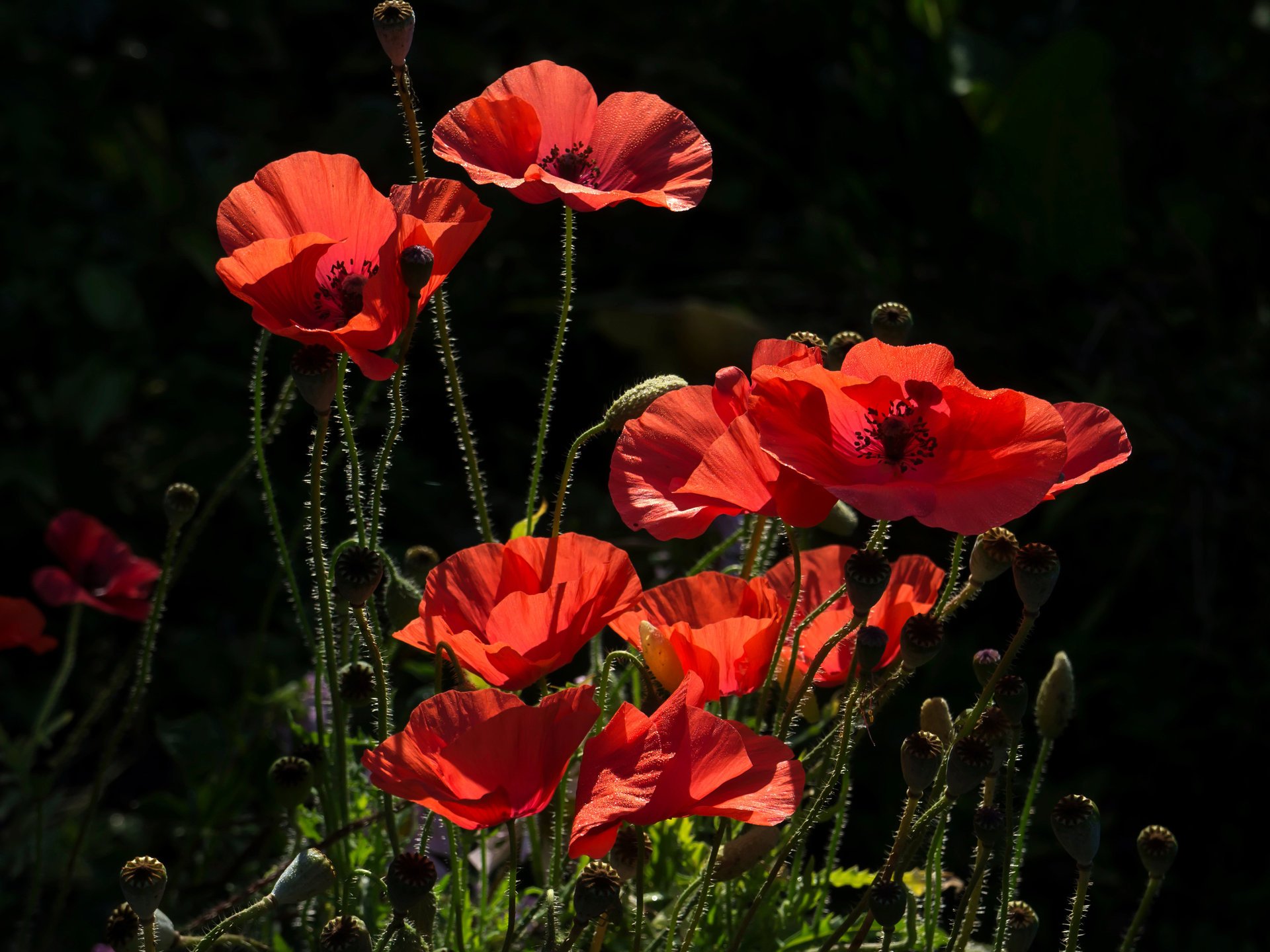 Papaveri rossi contro il cielo al tramonto in Inghilterra