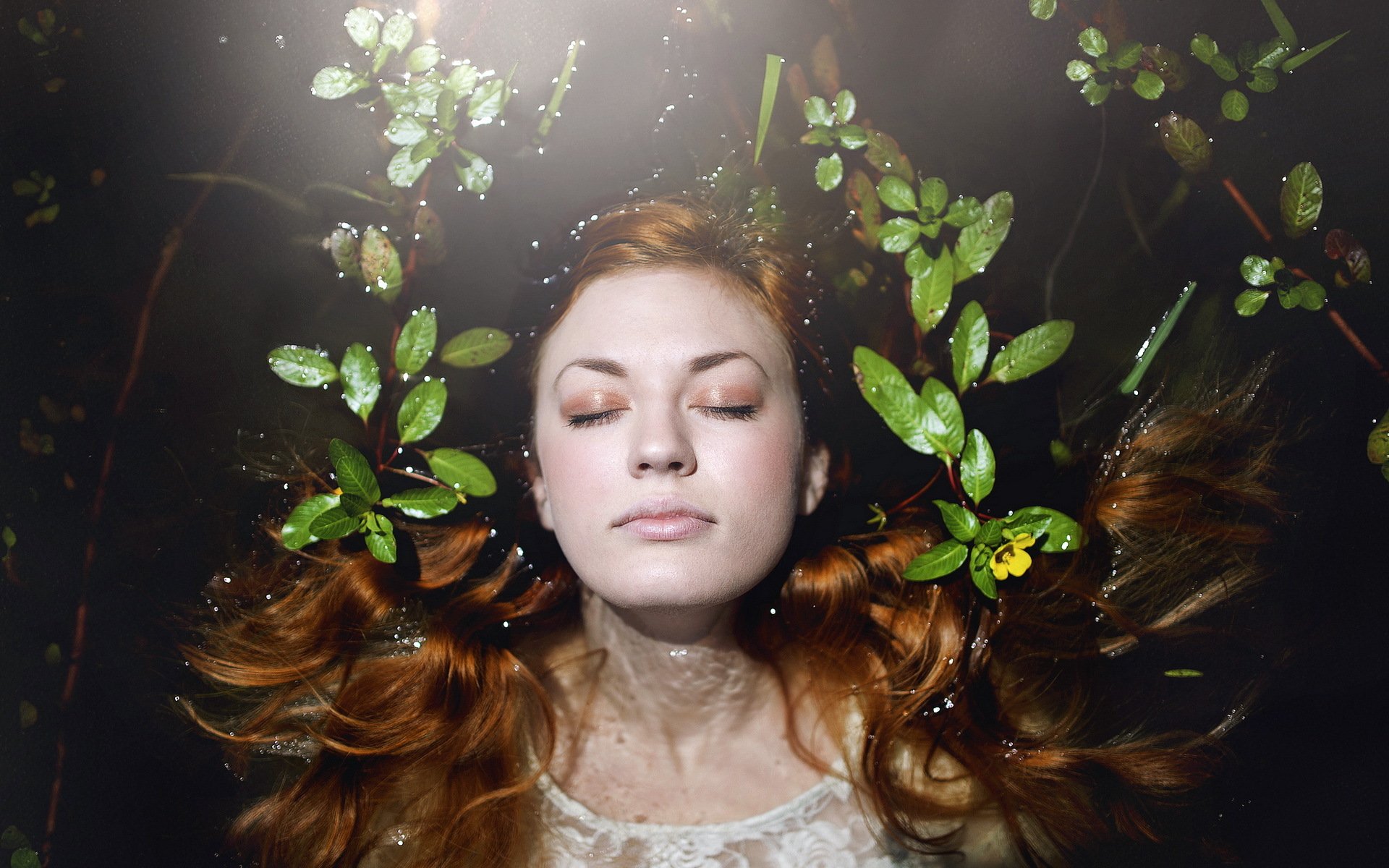 Ragazza che dorme in una valigia nella foresta misteriosa