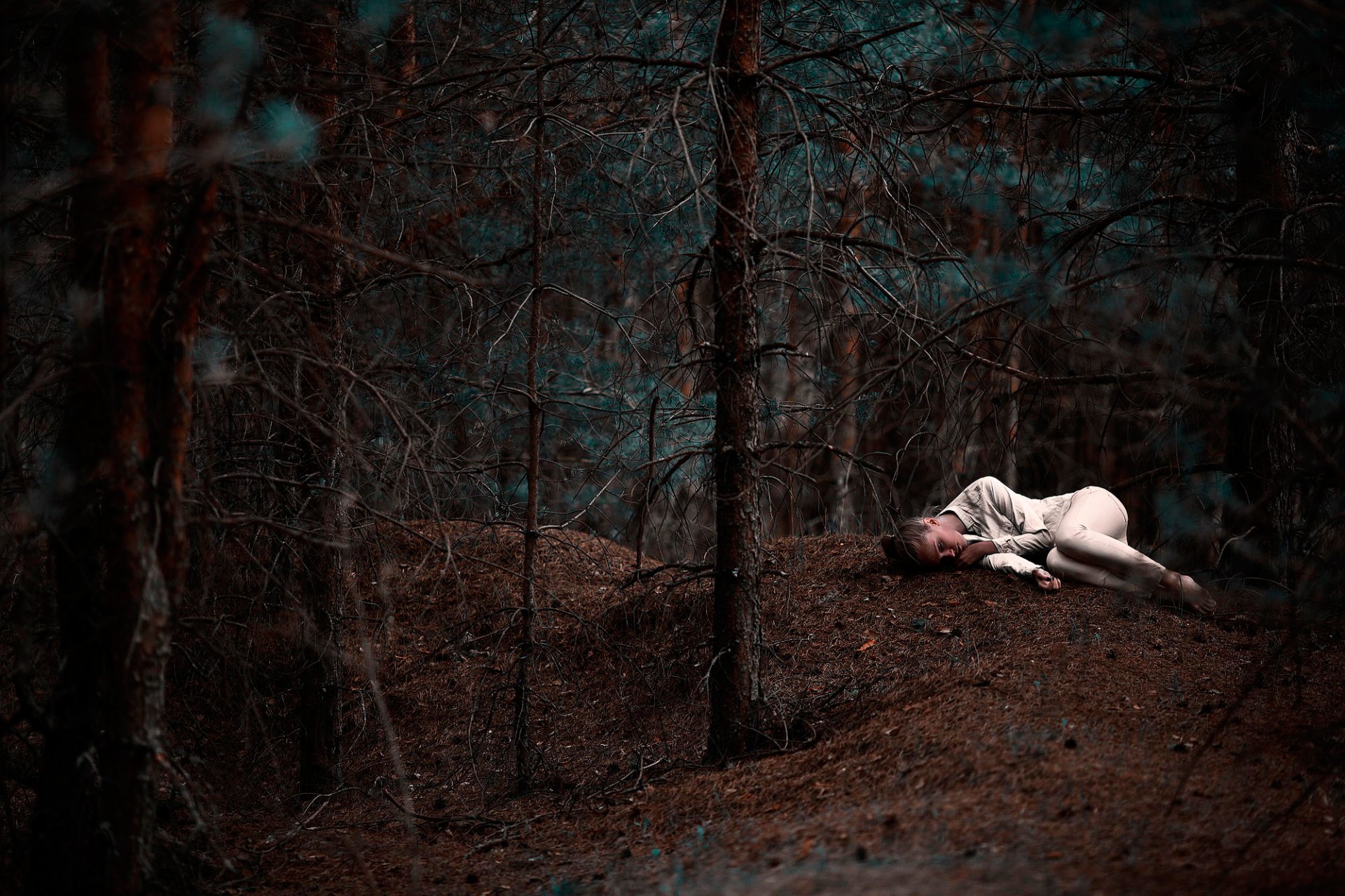 Foresta, boschetto, pino ragazza addormentata