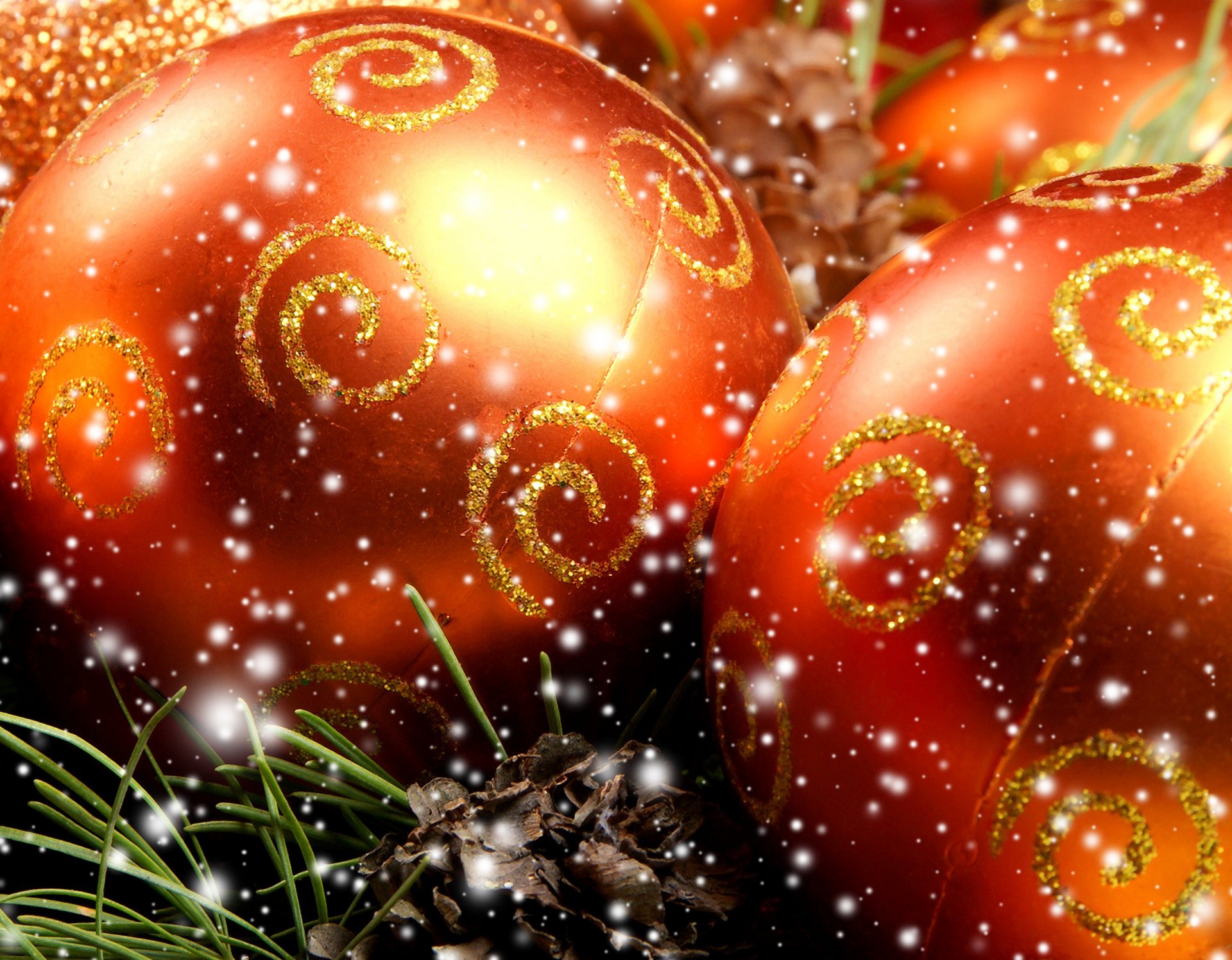 Palline di Natale rosse con spirali dorate