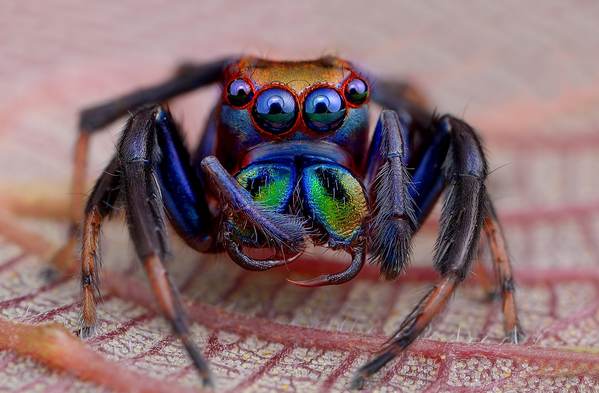 Sfondo blu Ragno Jumper con gli occhi Jumper