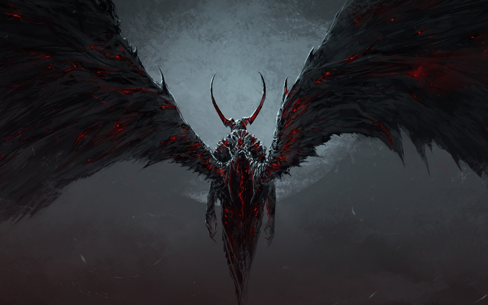 Disegno di una creatura con le ali. Creatura angelo o demone