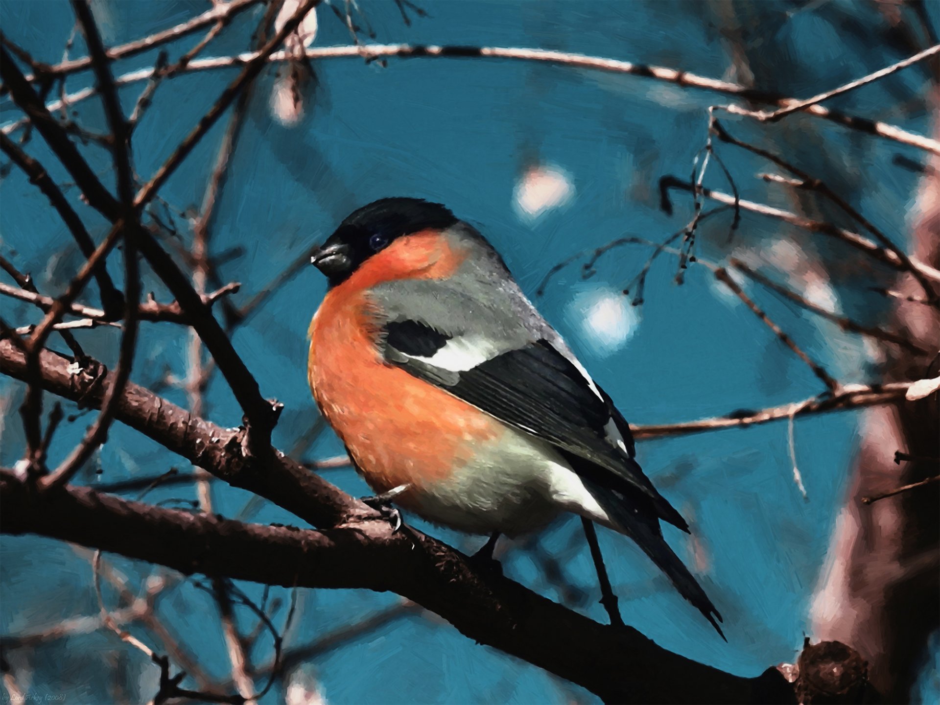 Un uccello dal petto rosso si siede su un ramo di un albero in fiore