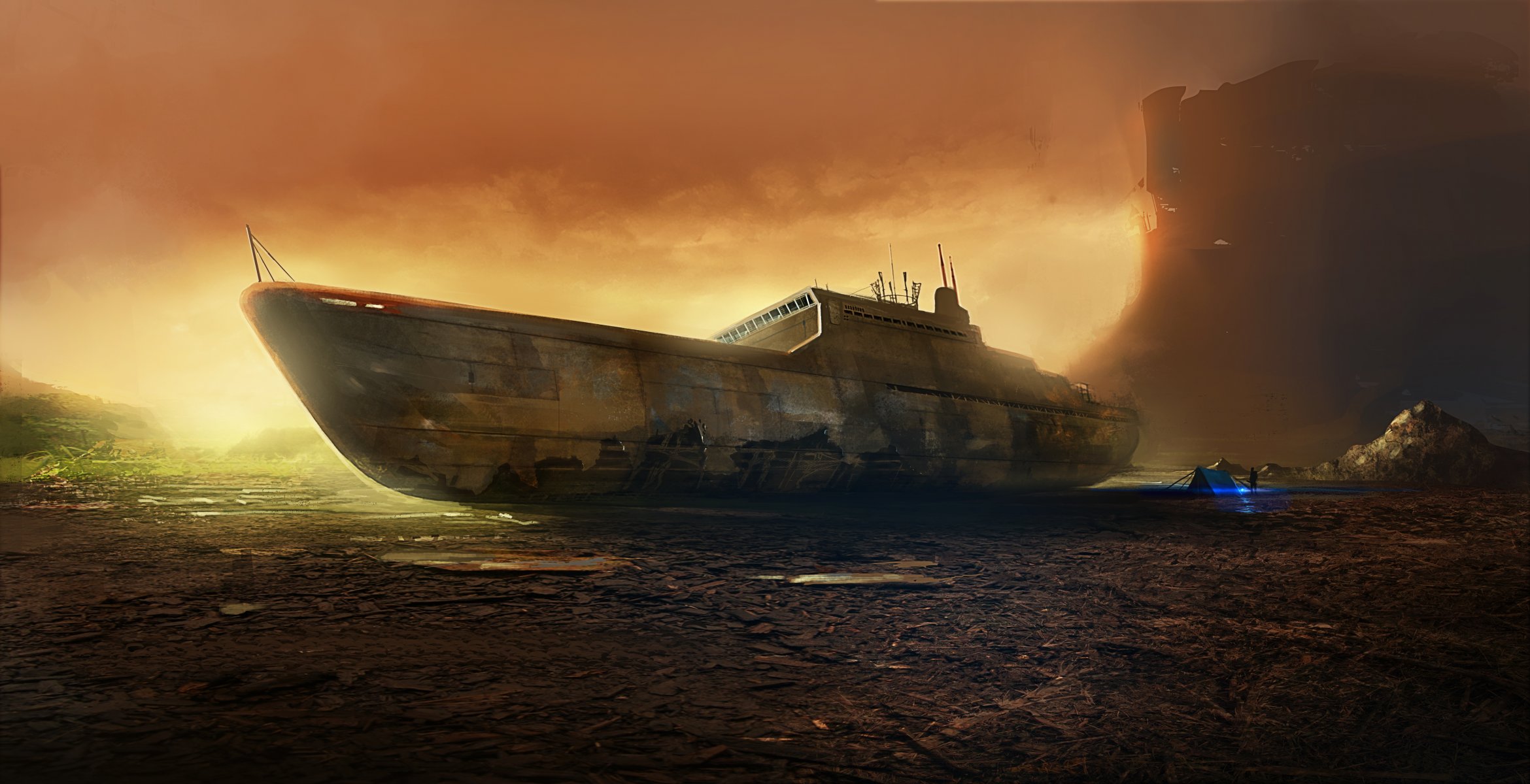 Relitto di una vecchia barca tra le braccia di una tempesta