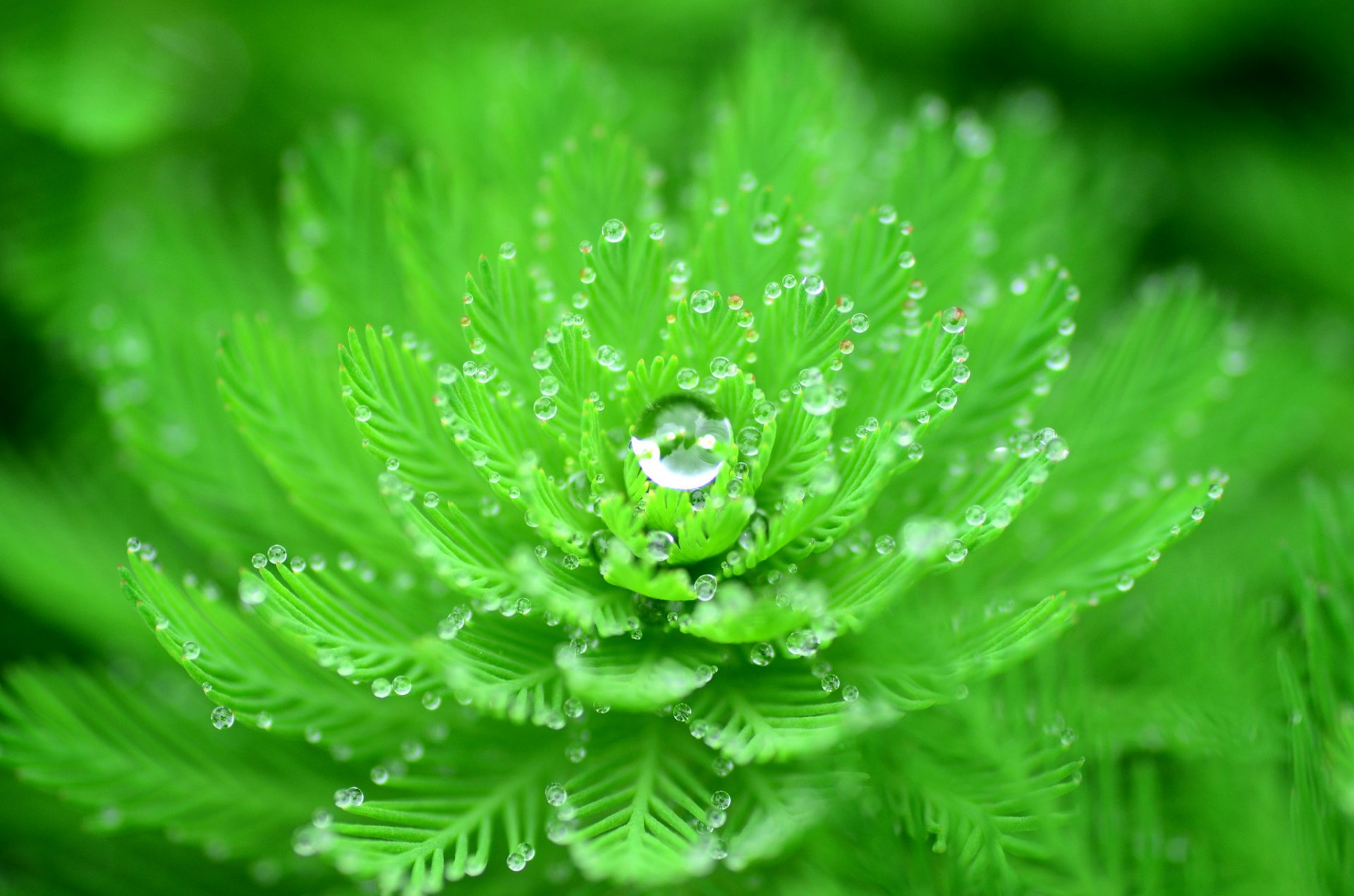Gocce di rugiada su una foglia verde