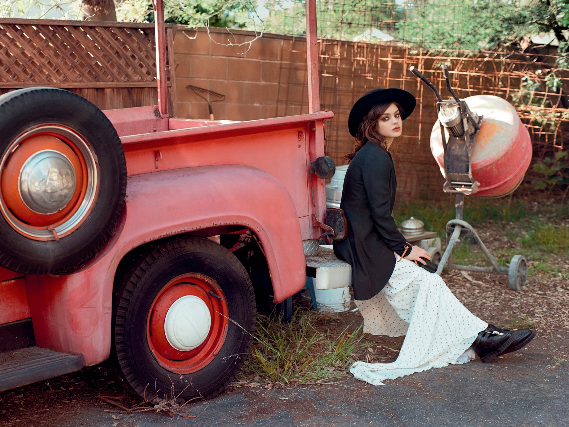 Eccellente servizio fotografico vicino a un barile con una figura snella