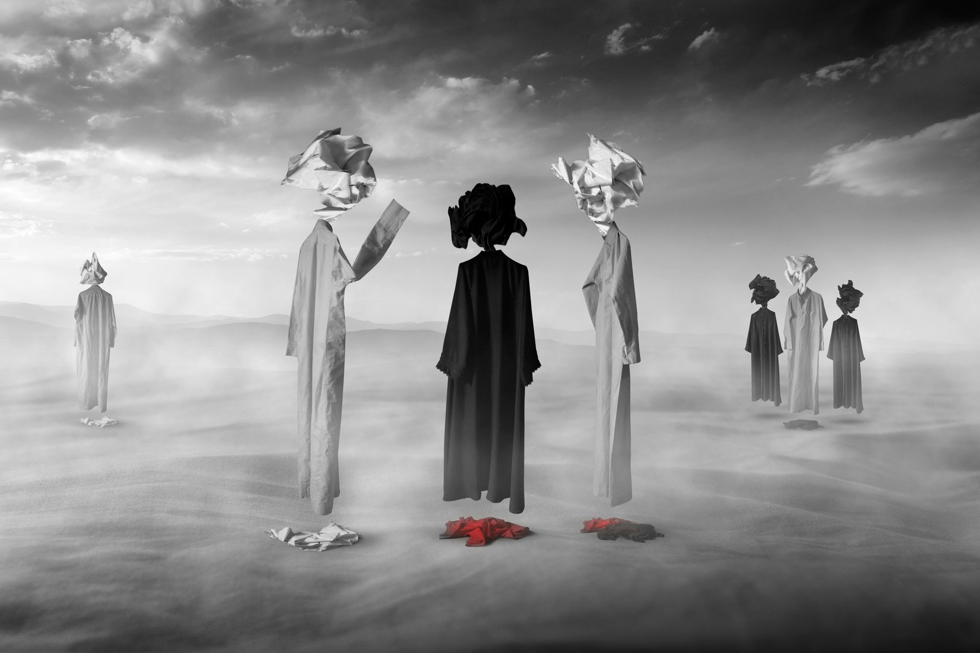Sagome di bambini e un albero su uno sfondo di cielo stellato