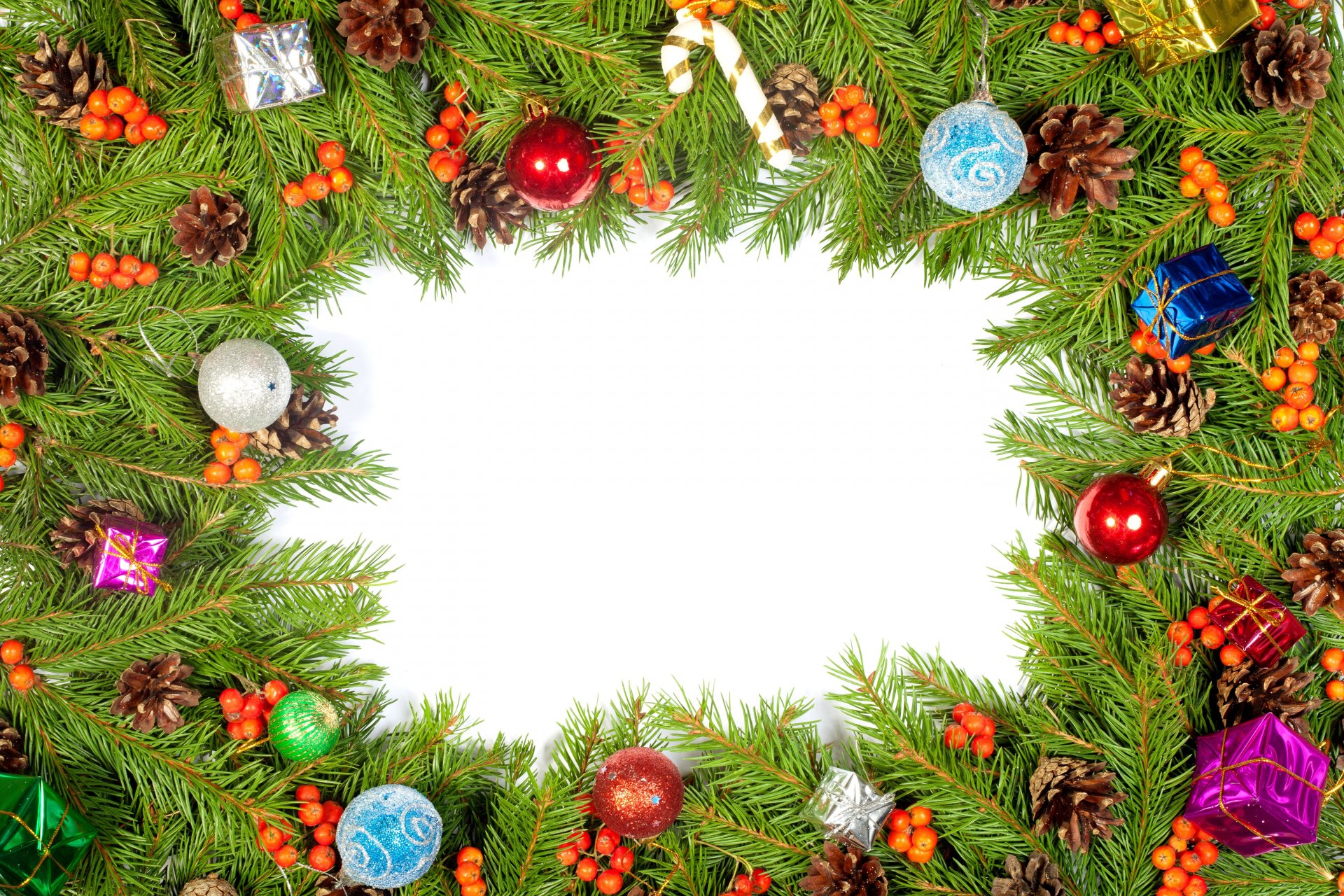 Biglietto di auguri con regali e decorazioni per l'albero di Natale per Capodanno e Natale