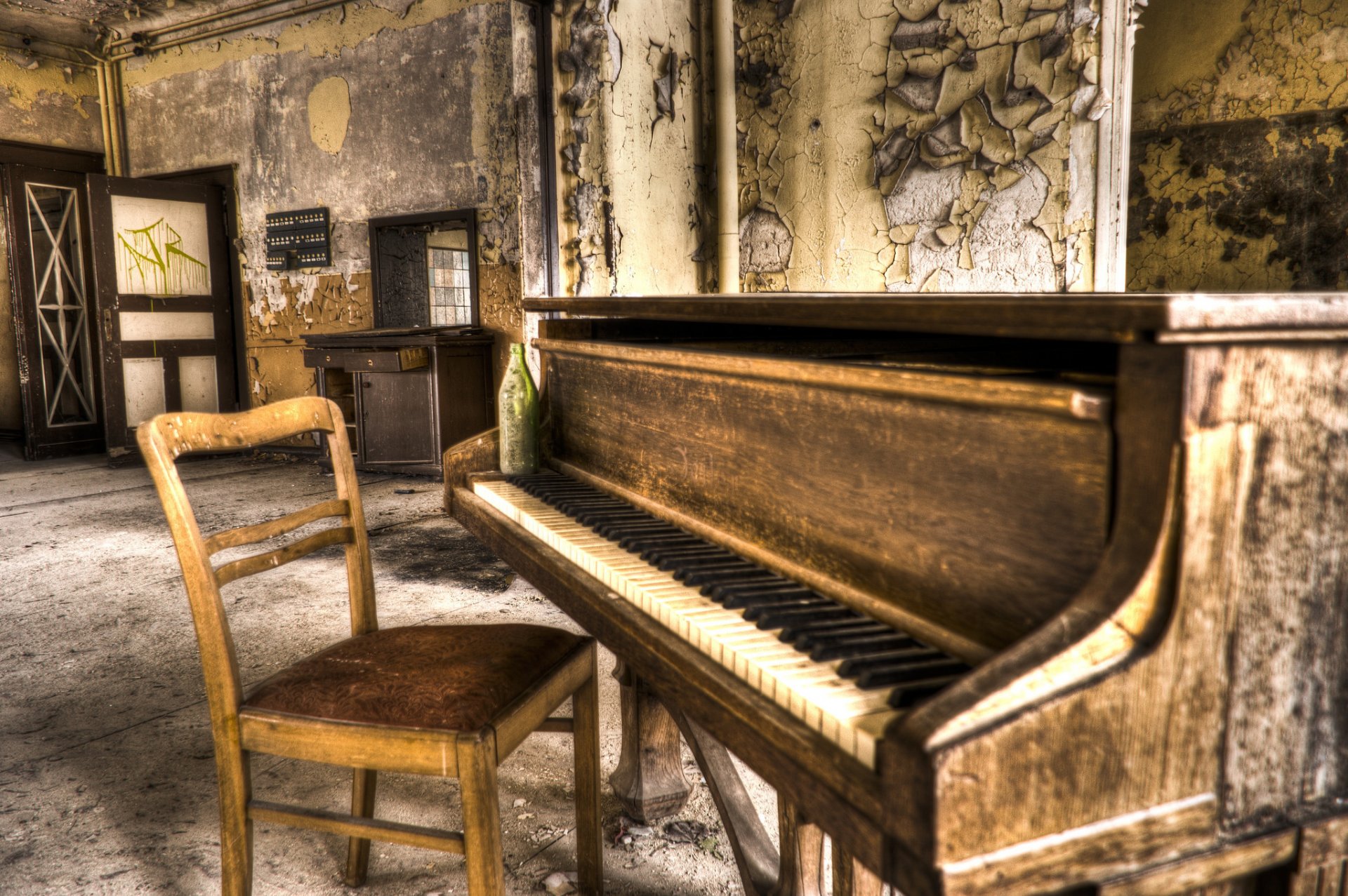 Pianoforte fatiscente in un edificio abbandonato