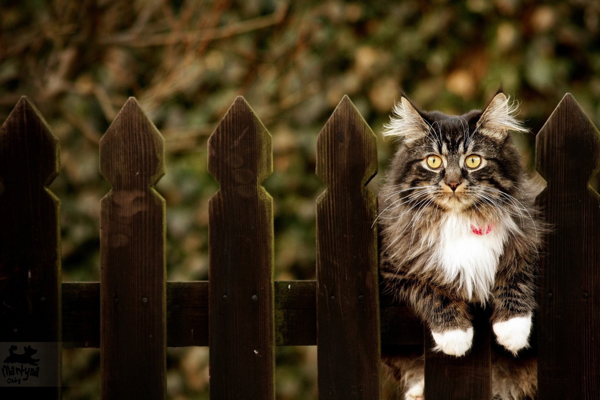 Peloso gatto si siede sul recinto