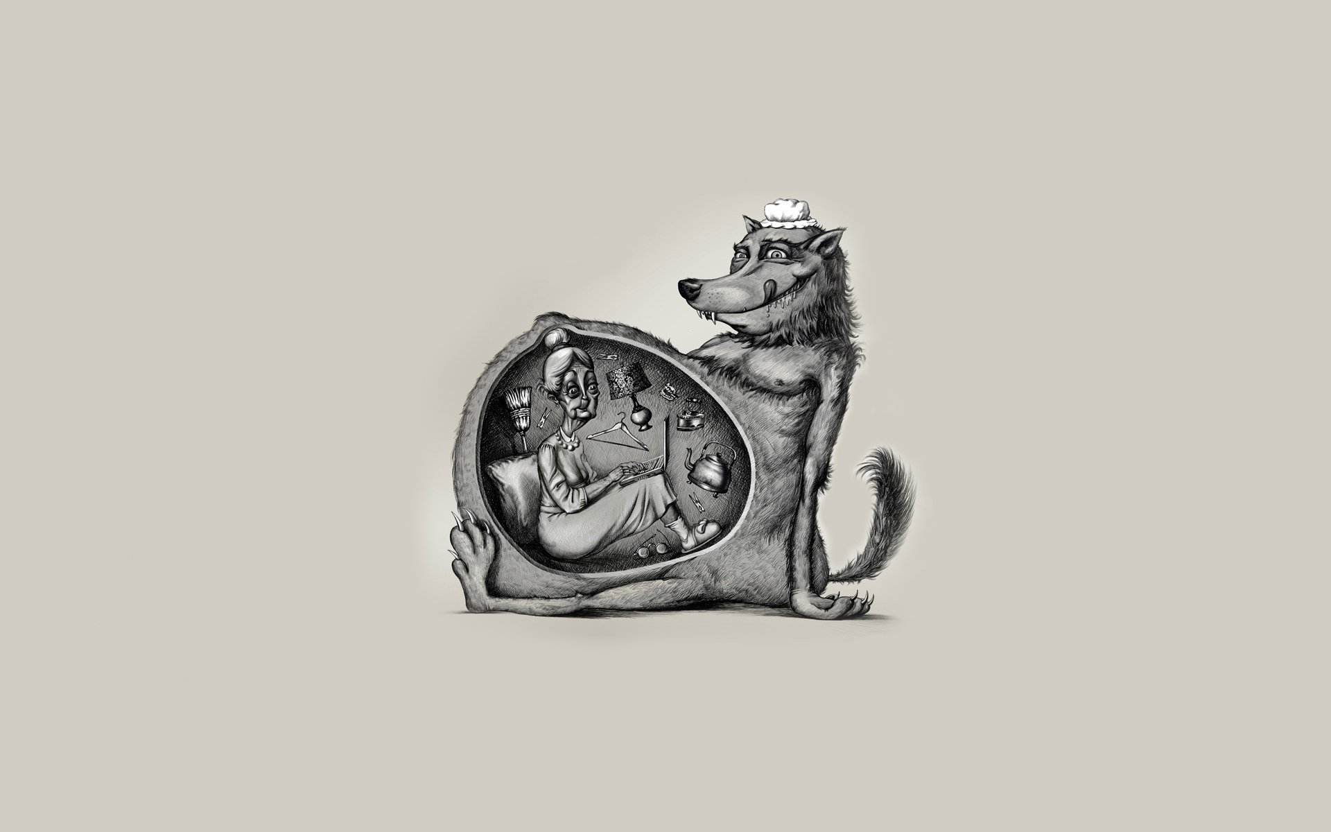 Illustrazione di un lupo grigio da Cappuccetto Rosso