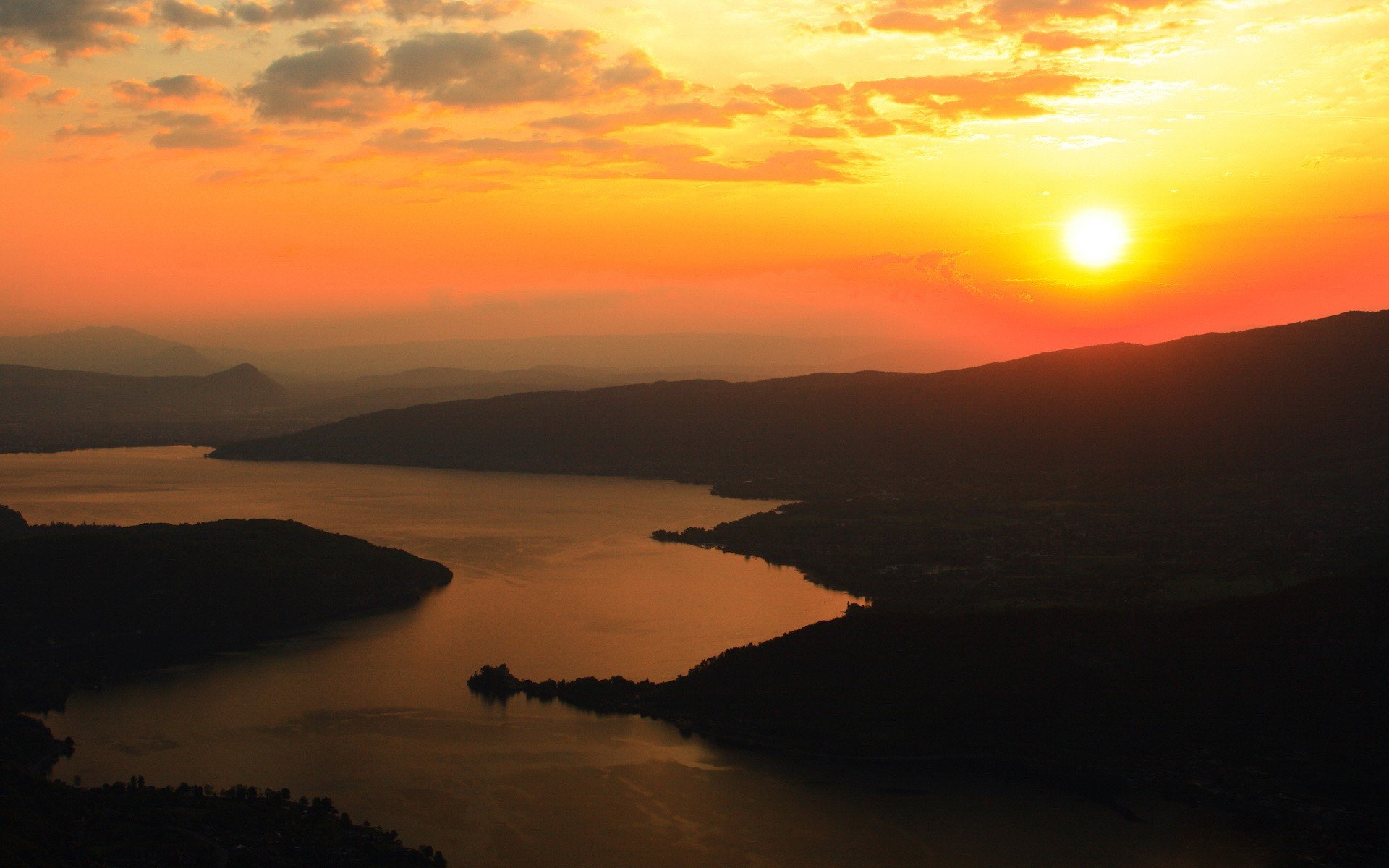 Bellissimo tramonto tra le nuvole sopra gli alberi
