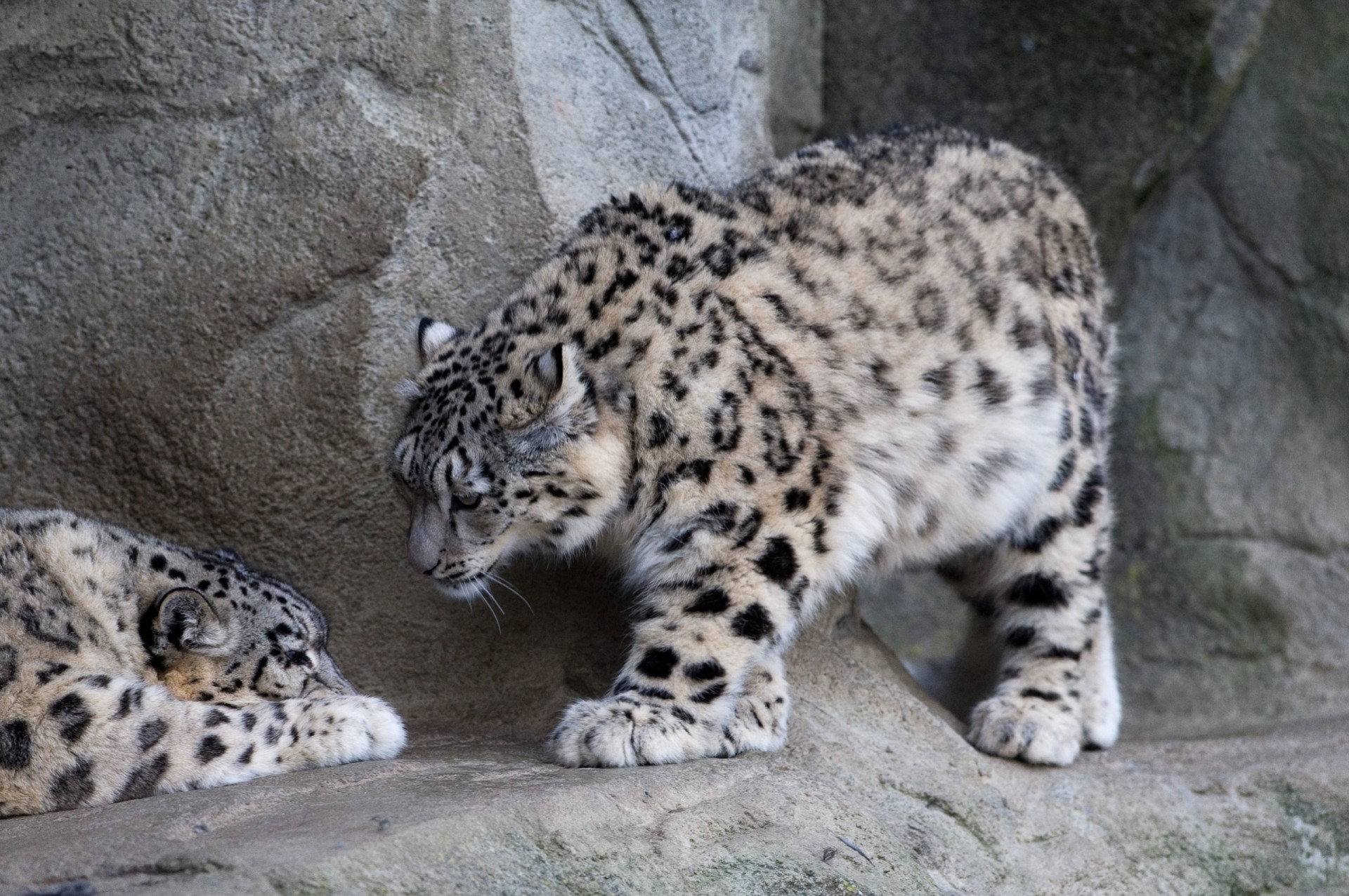 Gatti selvatici che riposano sulle rocce