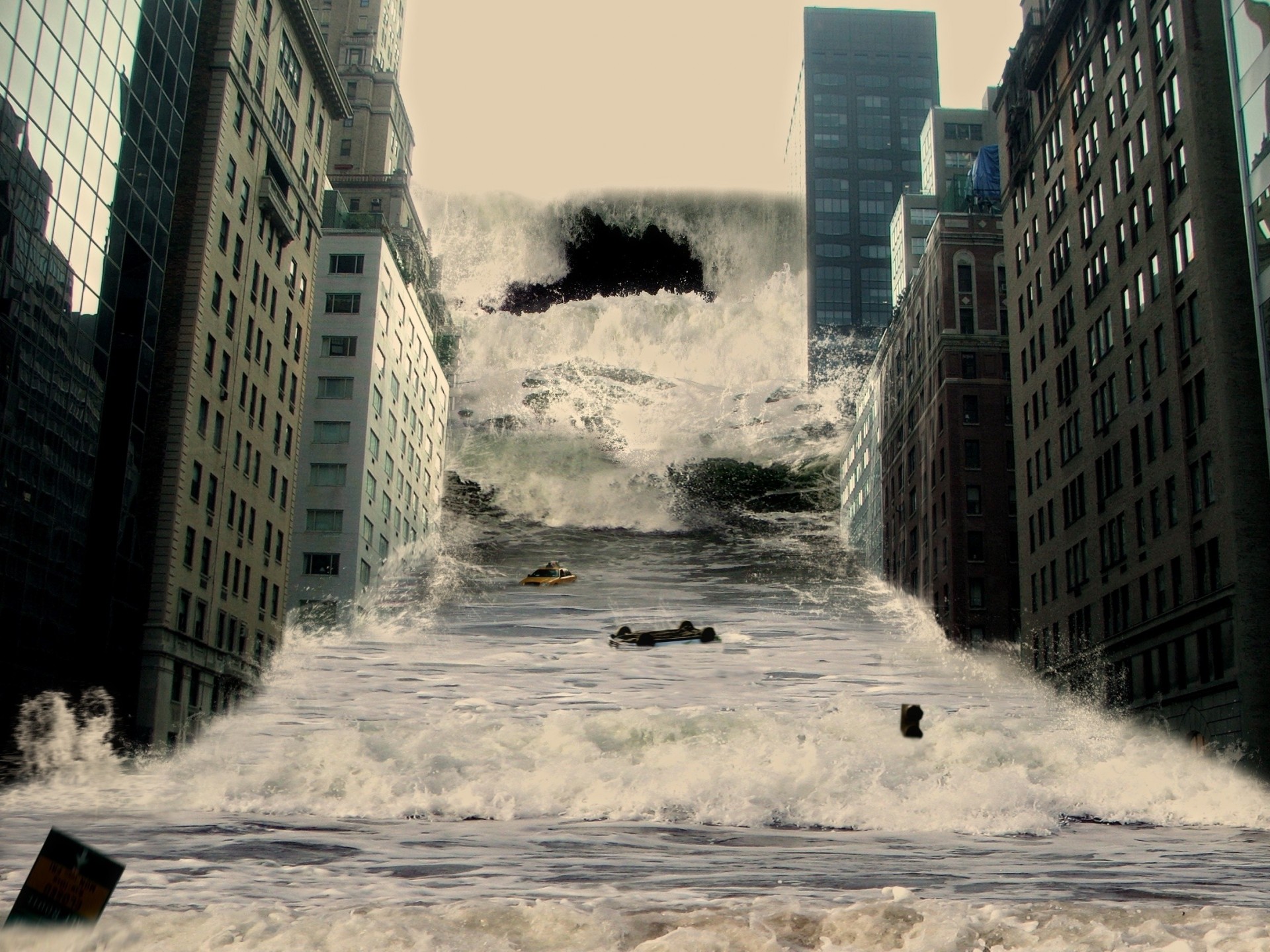 Disastro in città. L'alluvione distrugge i grattacieli di vetro