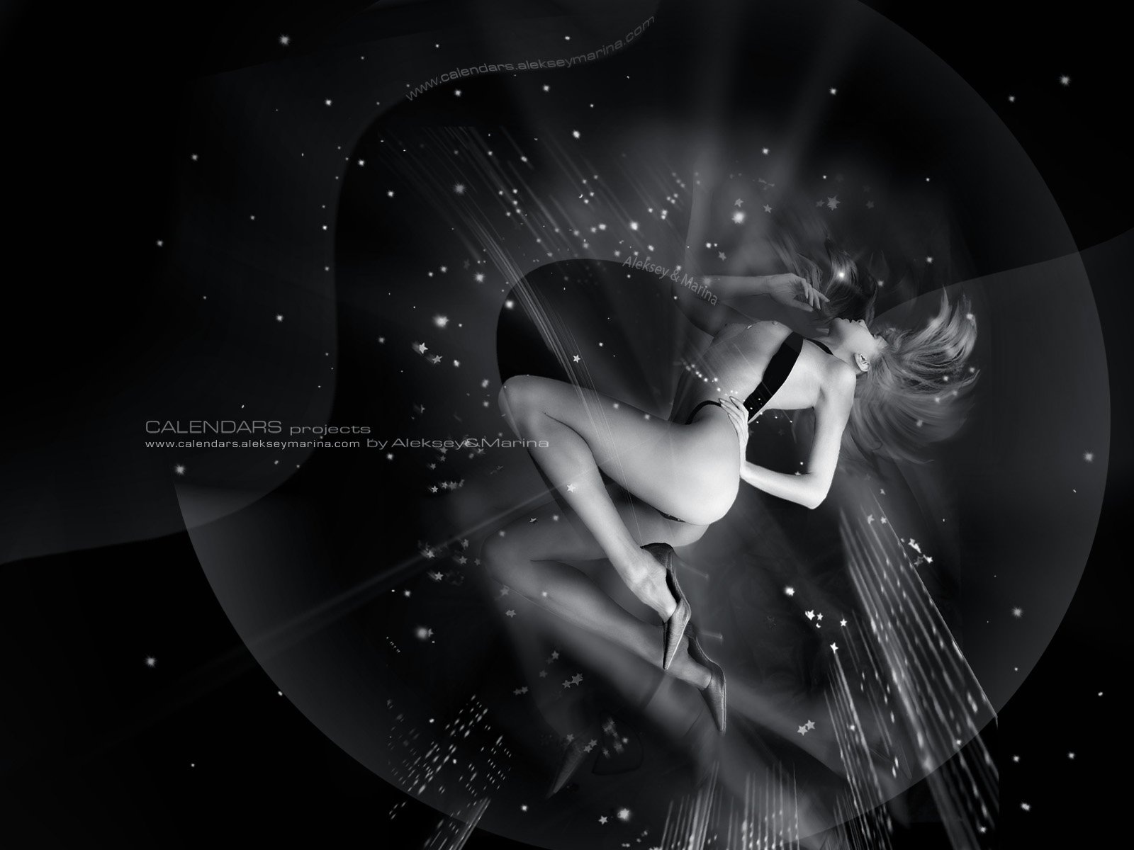 Arte con una ragazza nuda sullo sfondo di stelle e divorzi