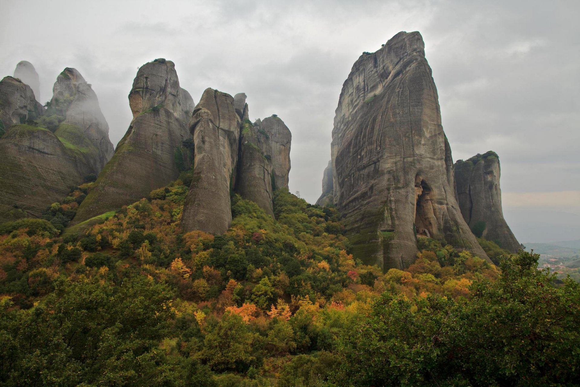 Cucina in legno con sedie con schienali alti montati su un tavolo coperto da una tovaglia turchese