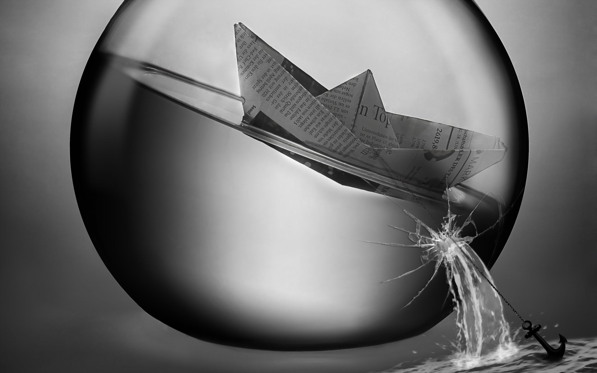 Nave con ancora su sfondo grigio