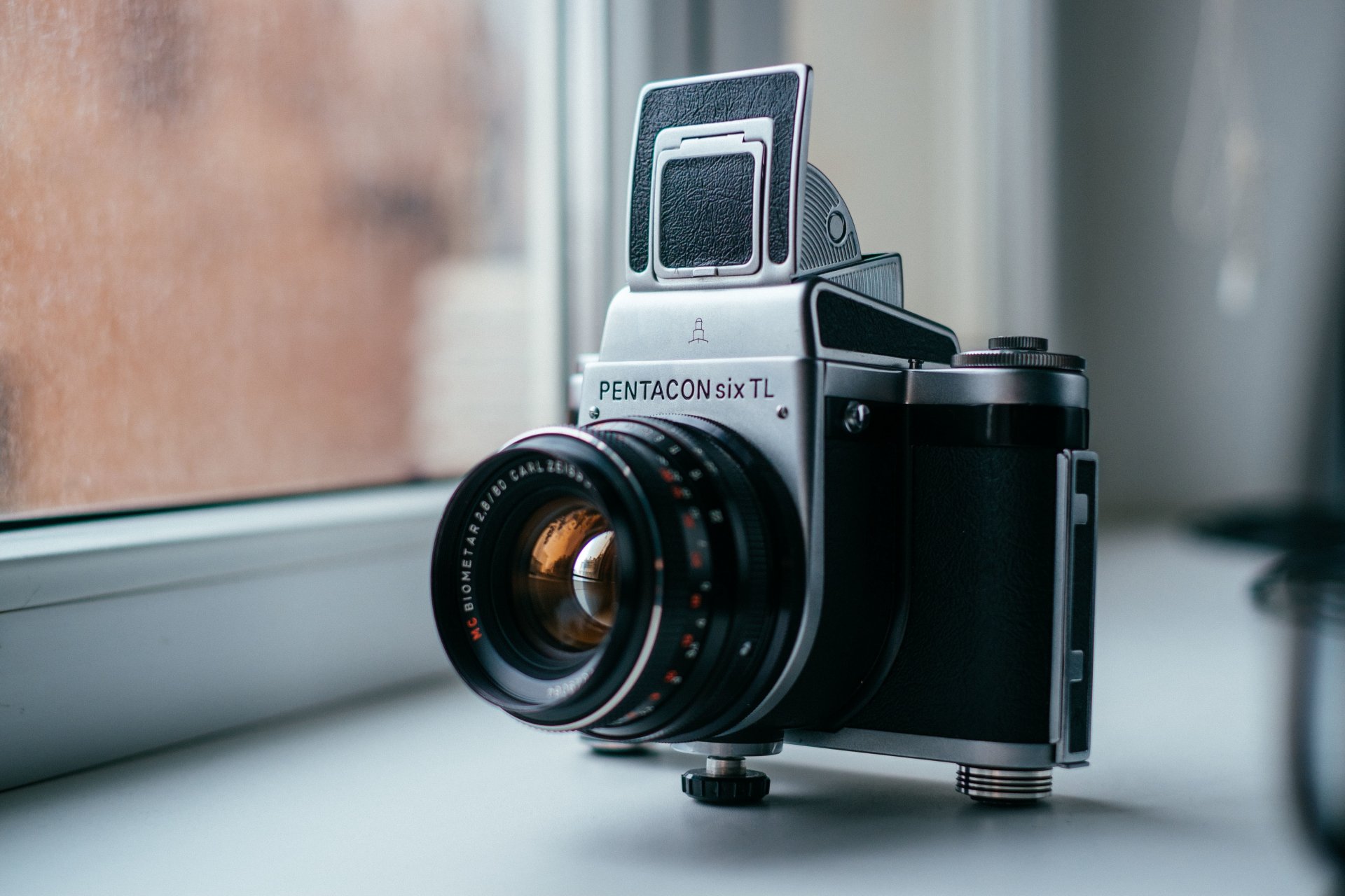 Foto di una macchina fotografica straniera su un bellissimo sfondo