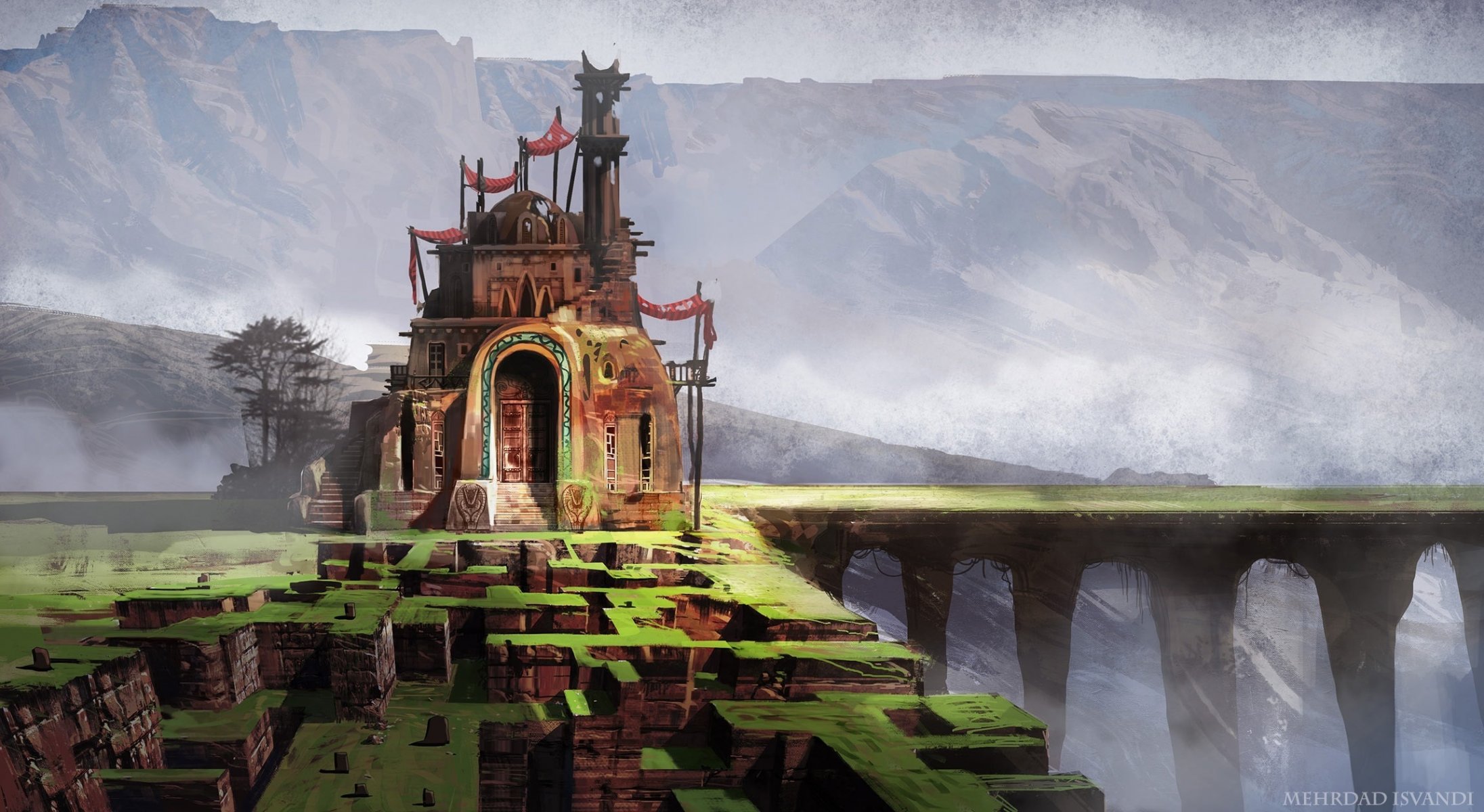 Casa sulla collina con ponte e labirinto