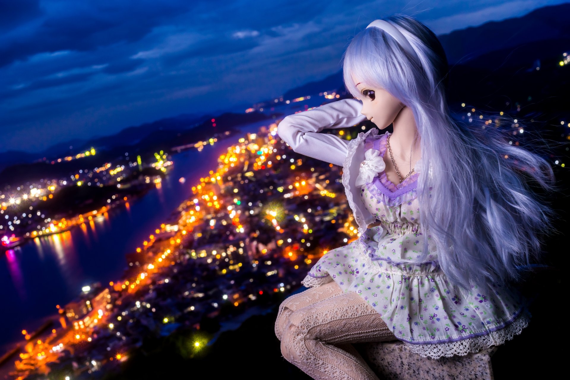 Bambola anime sopra la città notturna