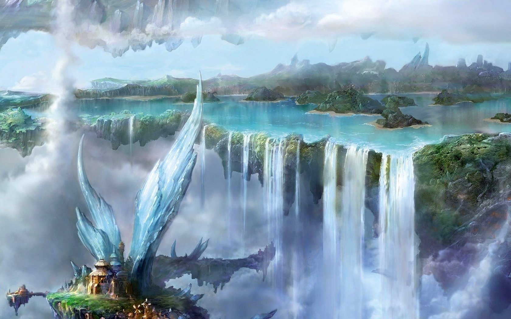 Un'isola paradisiaca con palme e sabbia bianca in mezzo a buoi blu e cielo