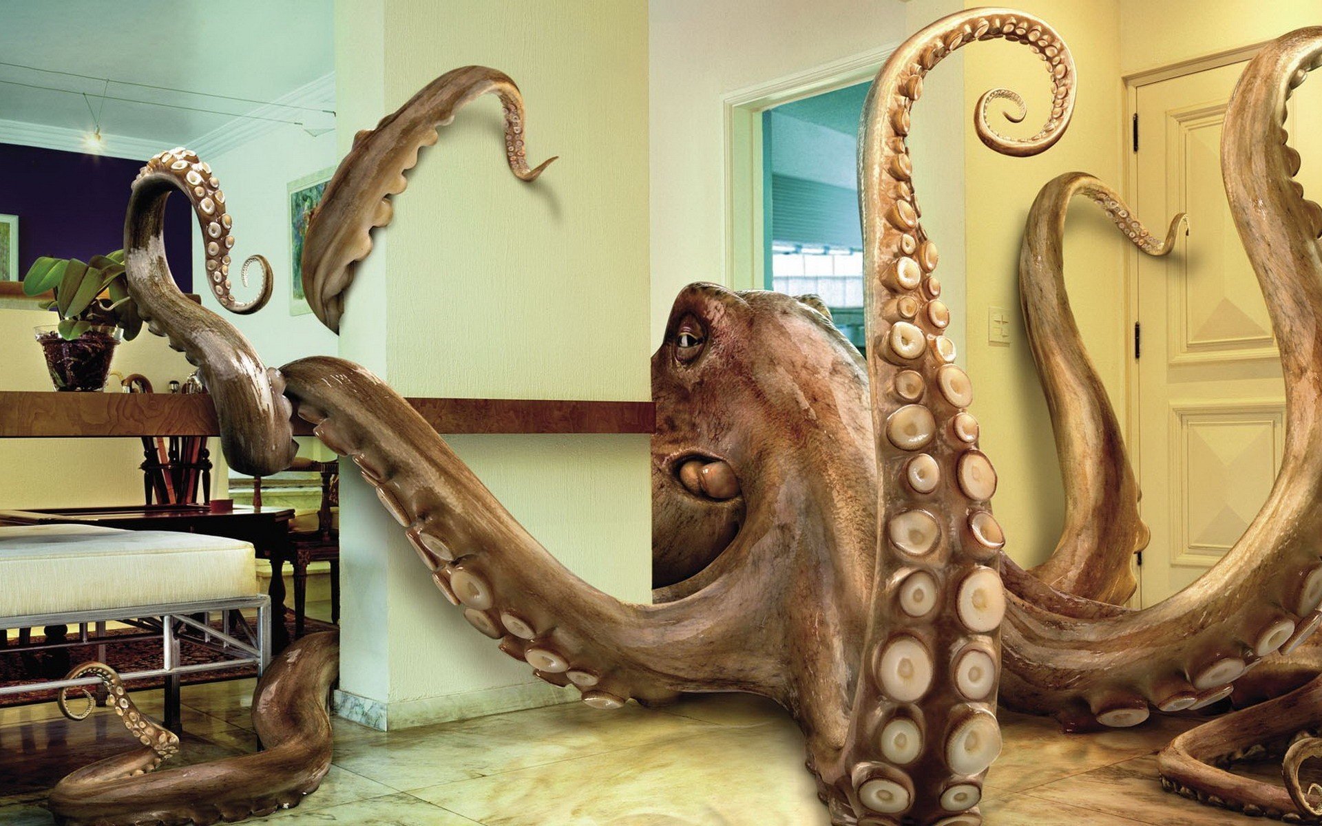 Enorme polpo su piastrelle in appartamento