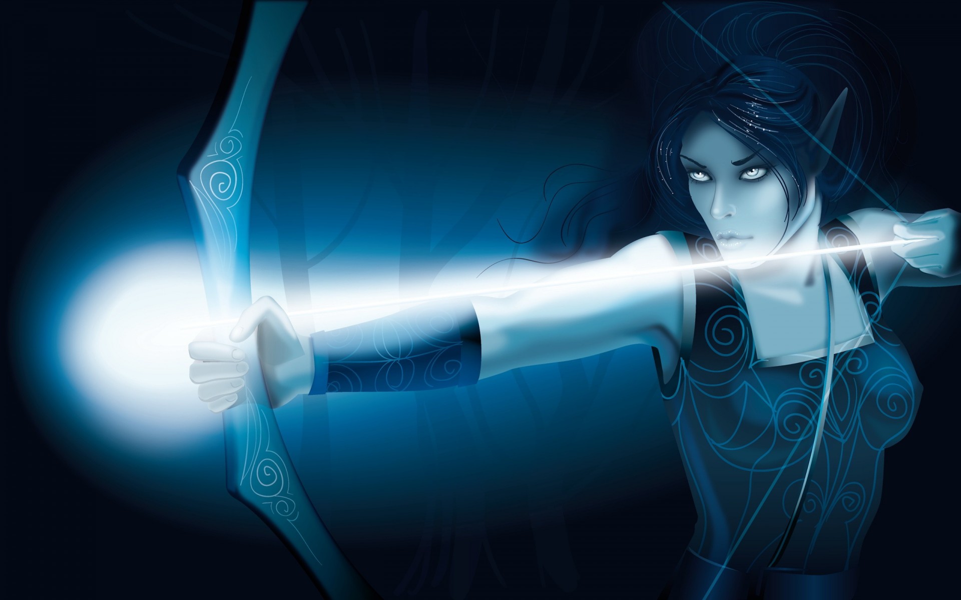 Ragazza con arco e freccia luminosa