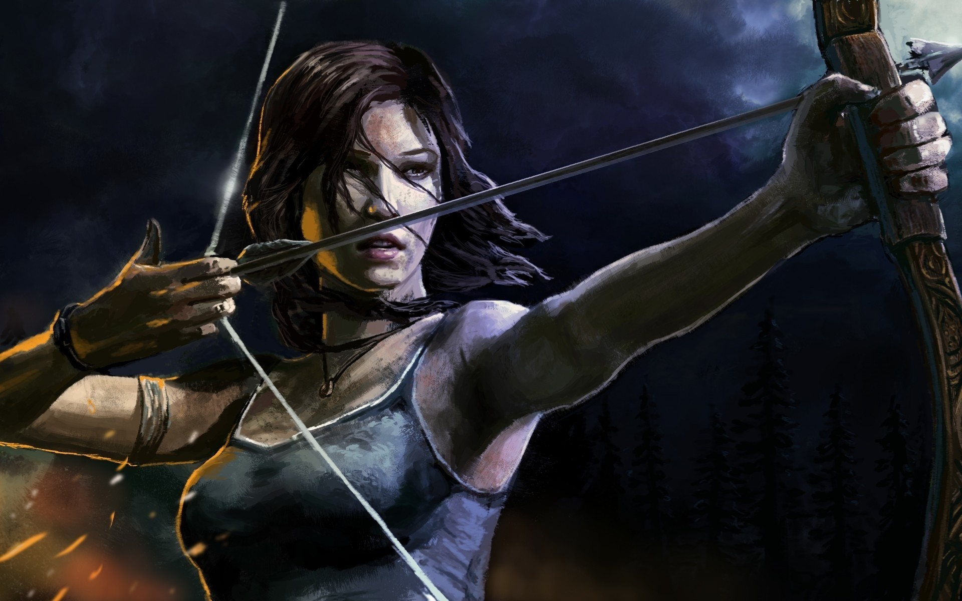 Affascinante Lara Croft in una scena di tiro con l'arco