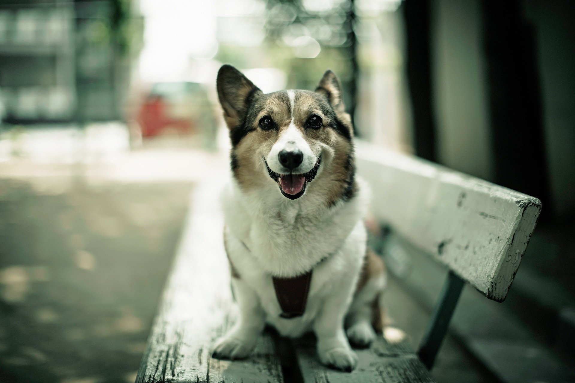 Sulla panchina del cane con uno sguardo triste
