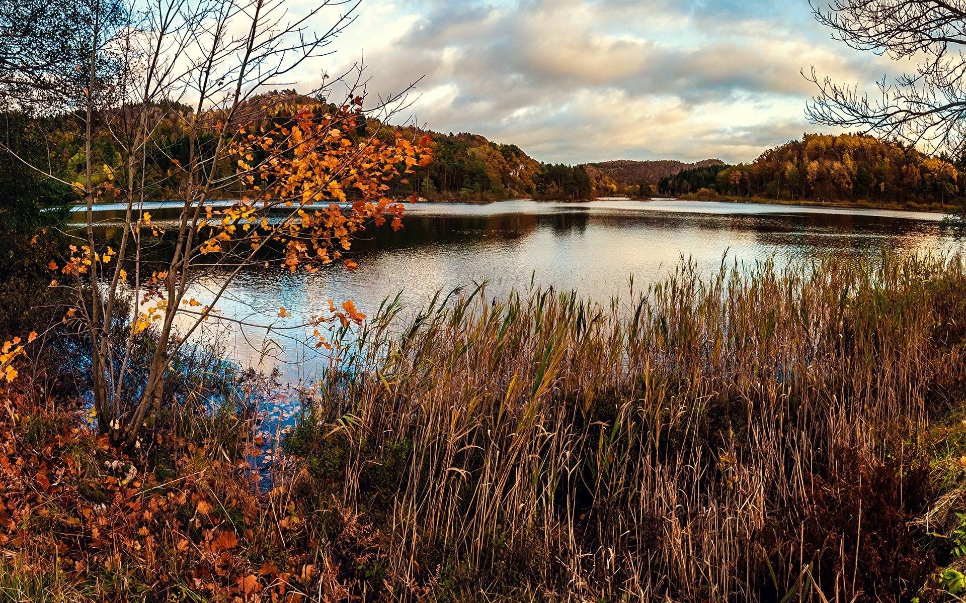 Un tripudio di colori su un ramo di acero canadese, autunno in rosso