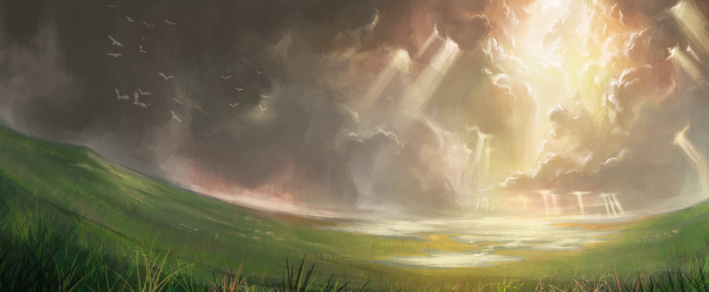 Bellissimo paesaggio di Prato dipinto ad acquerello