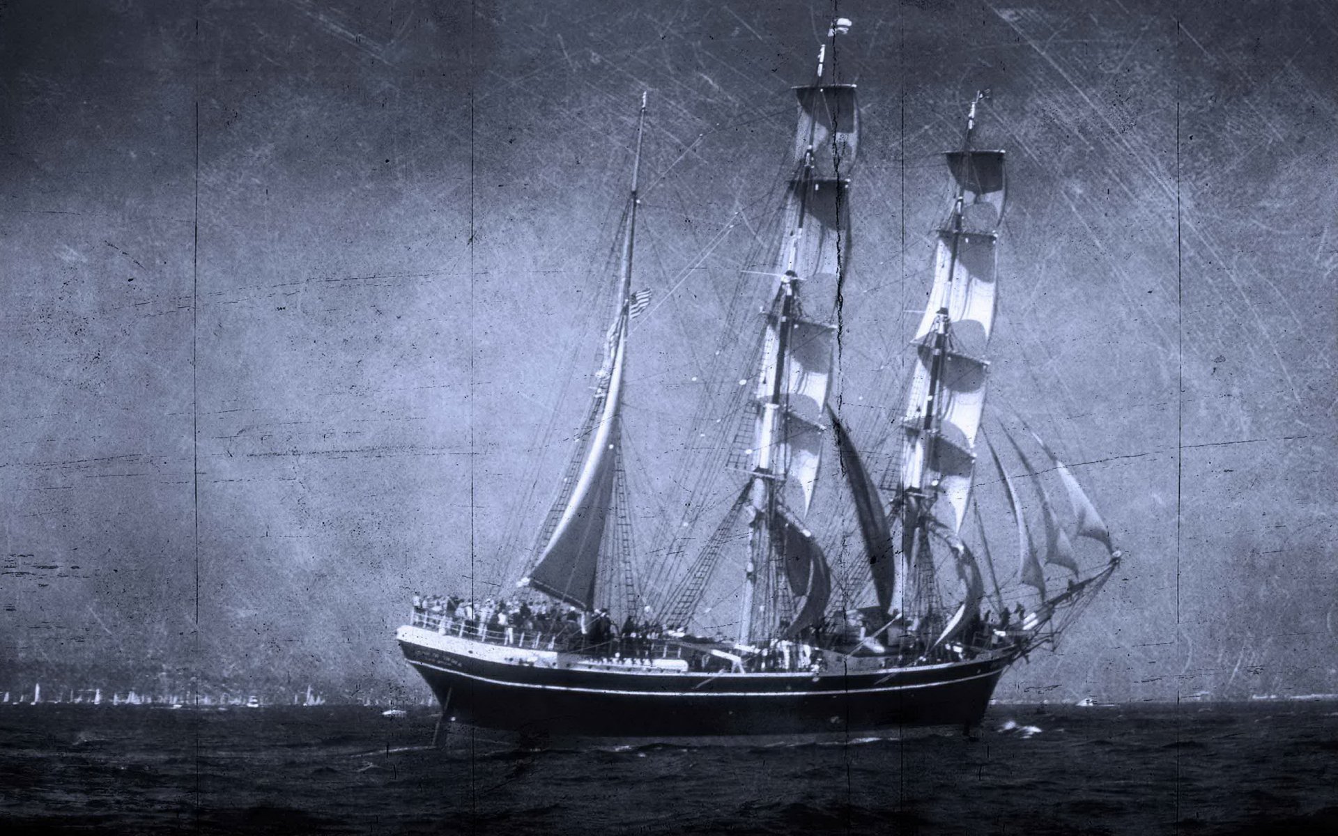 Nave in mare a vela su sfondo scuro